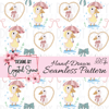 This hand-drawn seamless pattern features the most charming little goose dressed in a yellow raincoat and carrying a pink umbrella—surrounded by raindrops, leafy accents, bows, and heart-shaped frames. It’s soft, delicate, and designed with cottagecore-meets-kidcore charm.