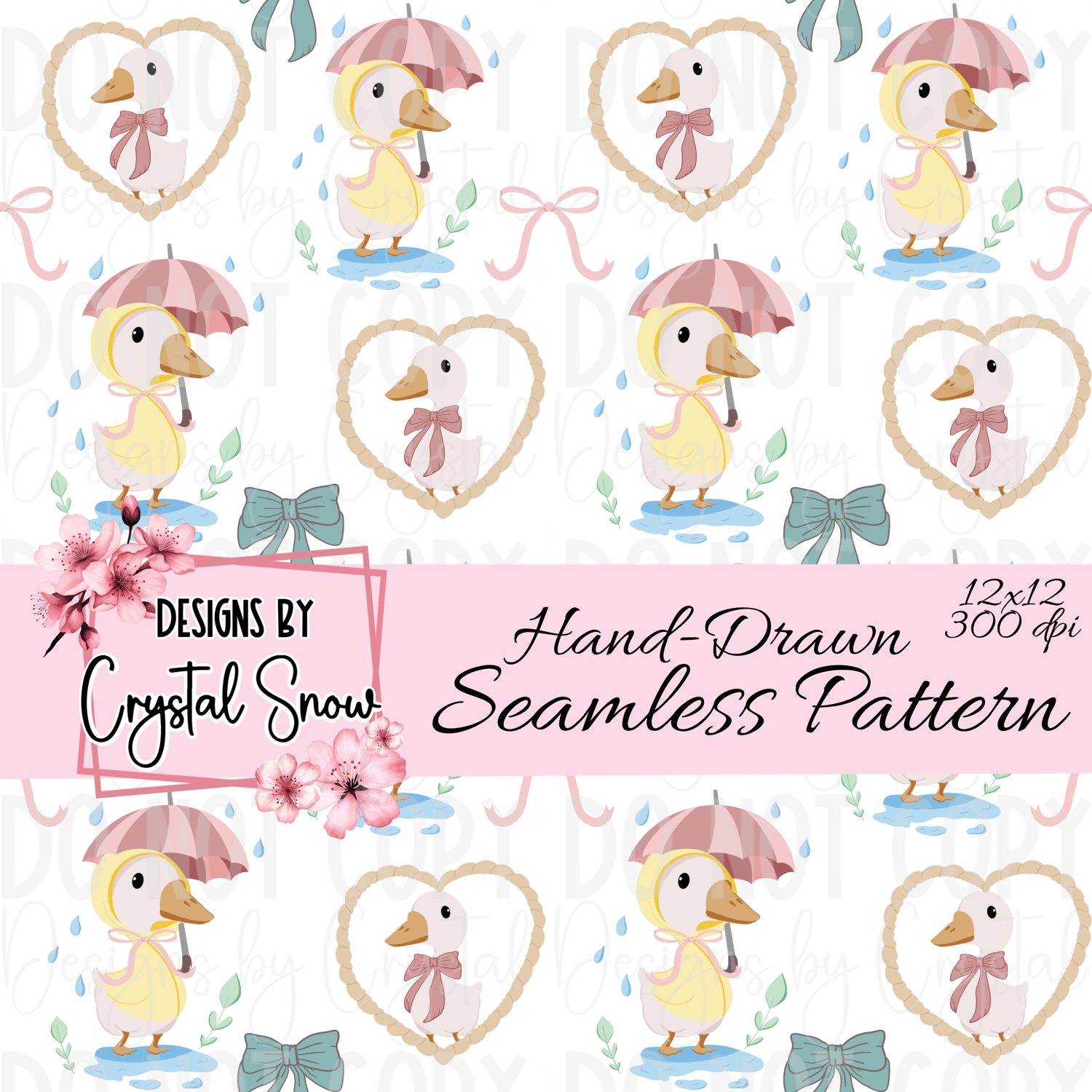 Sweet spring showers meet adorable ducky power in this pastel seamless pattern—perfect for gentle rainy day vibes!