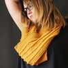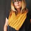 Beautiful cowl with elongated stitches and a play on basic knits and purls create a stunning accessory that can be wrapped double or left long.