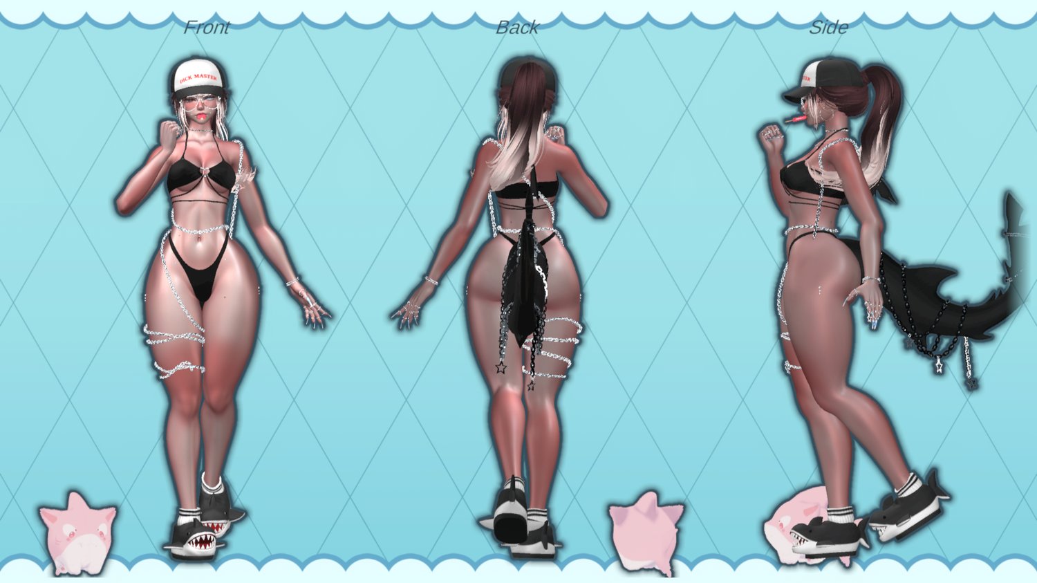 ๐๐ต๐ธ๐ฝ๐ฑ๐ฒ๐ท๐ฐ: 4 Tops (Bikini, Life Suit, Crop Top, Set Top) 3 Bottoms (Skirt, Set Bottoms, Pants) 3 Shoes (Shark Slippers, Heels, Flip Flops)