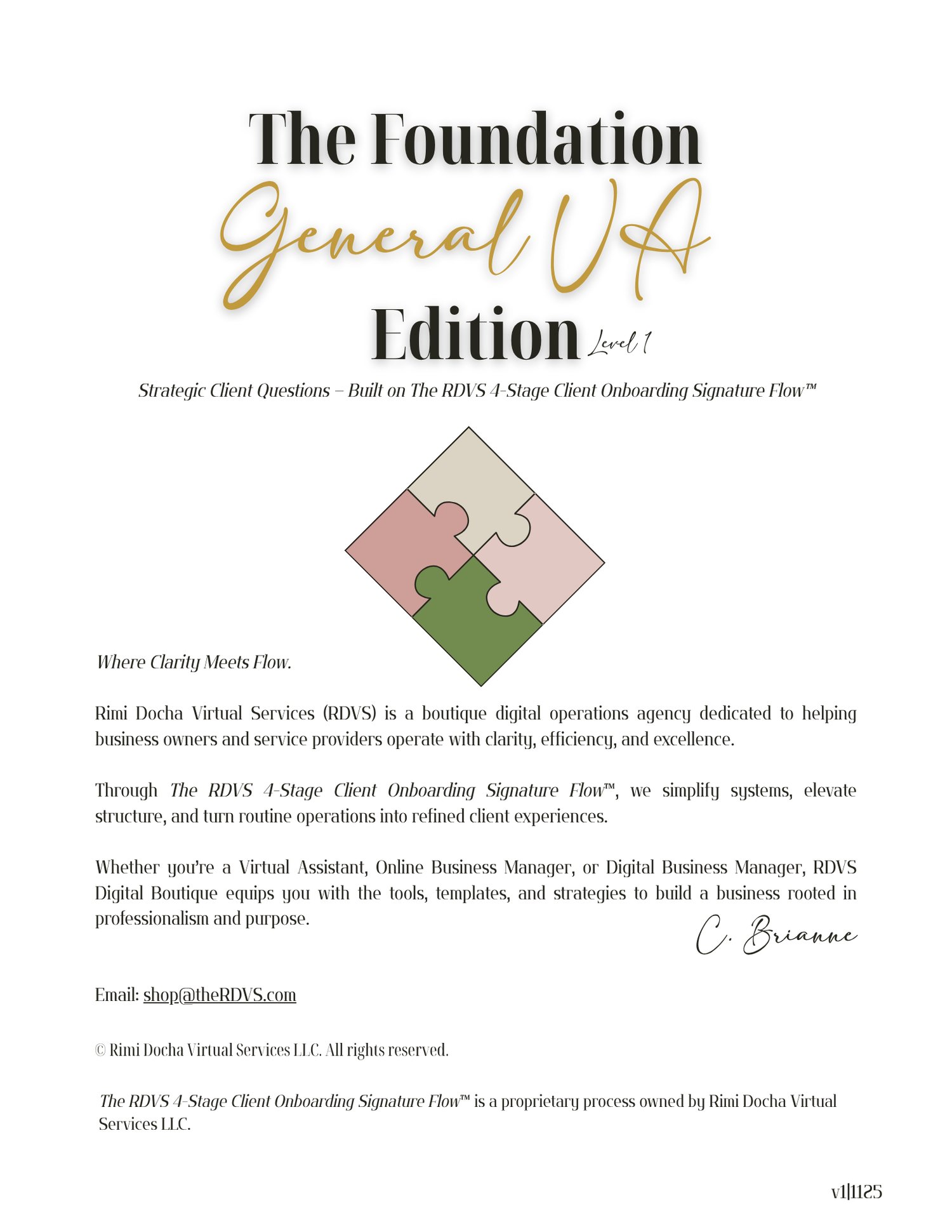 The Foundation — General Virtual Assistant Edition — Strategic Client Questions — Built on The RDVS 4-Stage Client Onboarding Signature Flow™