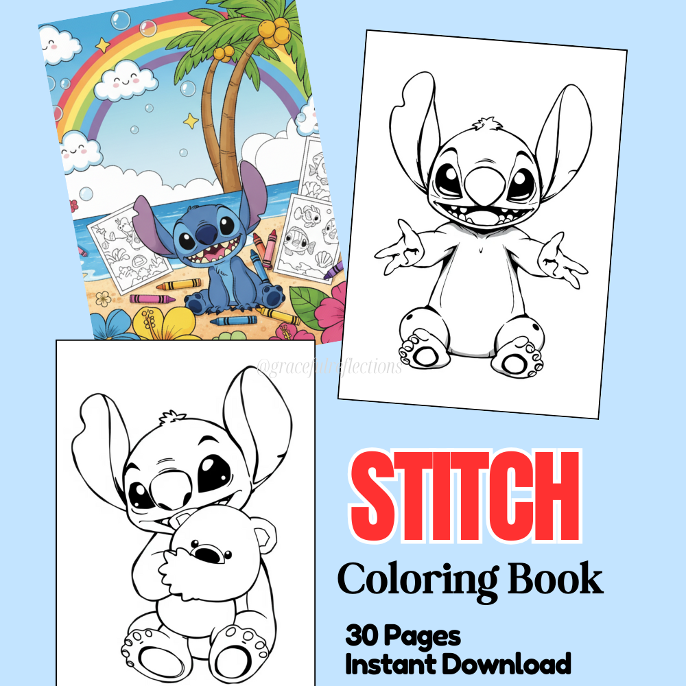 Stitch Coloring Book – 30 Cute Printable Pages for Kids Fun & Creativity