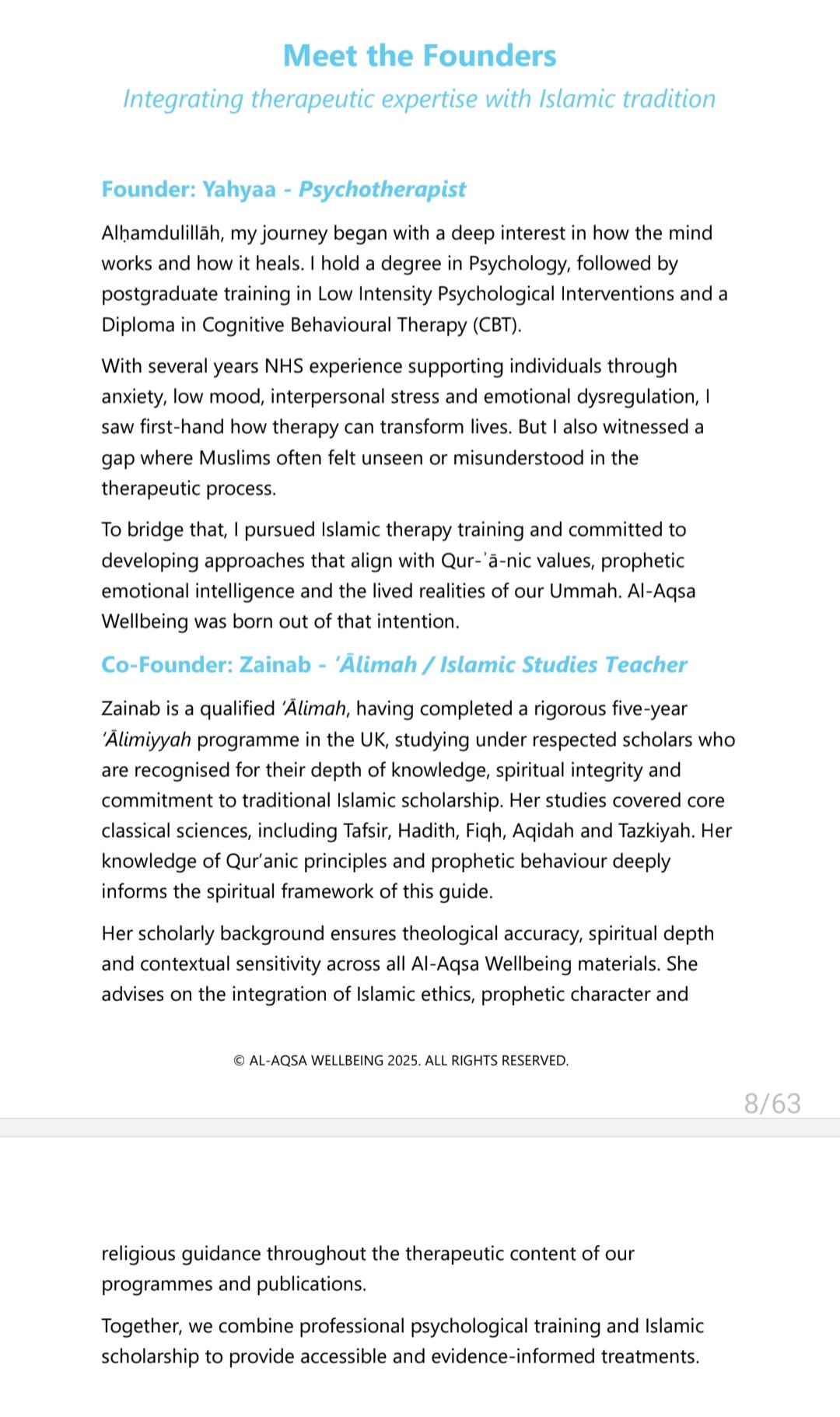 Created by a Licensed Muslim Psychotherapist and Co-written by a qualifed ‘Ālimah, the guide offers clinically informed tools and exercises that can be applied independently, whether or not you're currently in therapy.