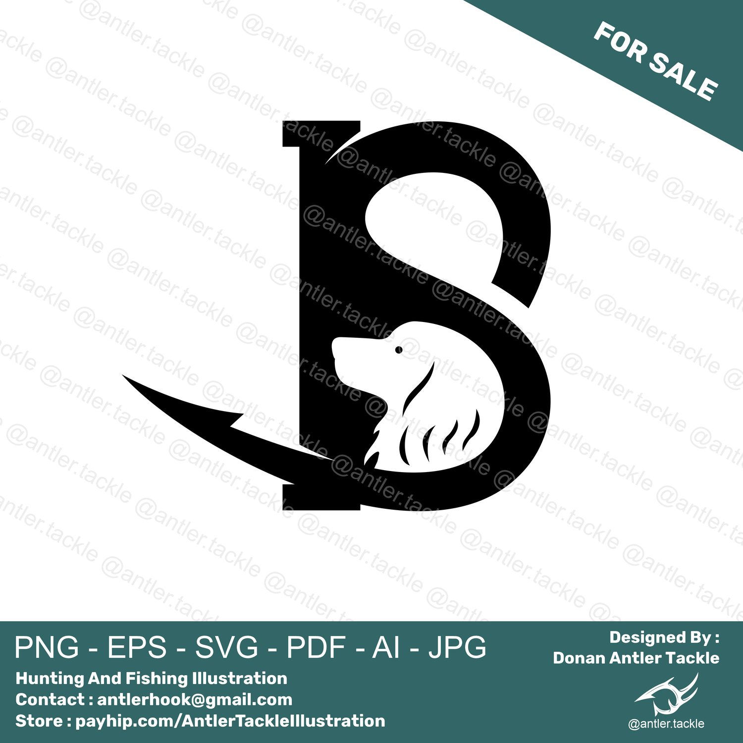 B Letter Cocker Spaniel Hook Logo Exclusive License Designed By Donan Antler Tackle