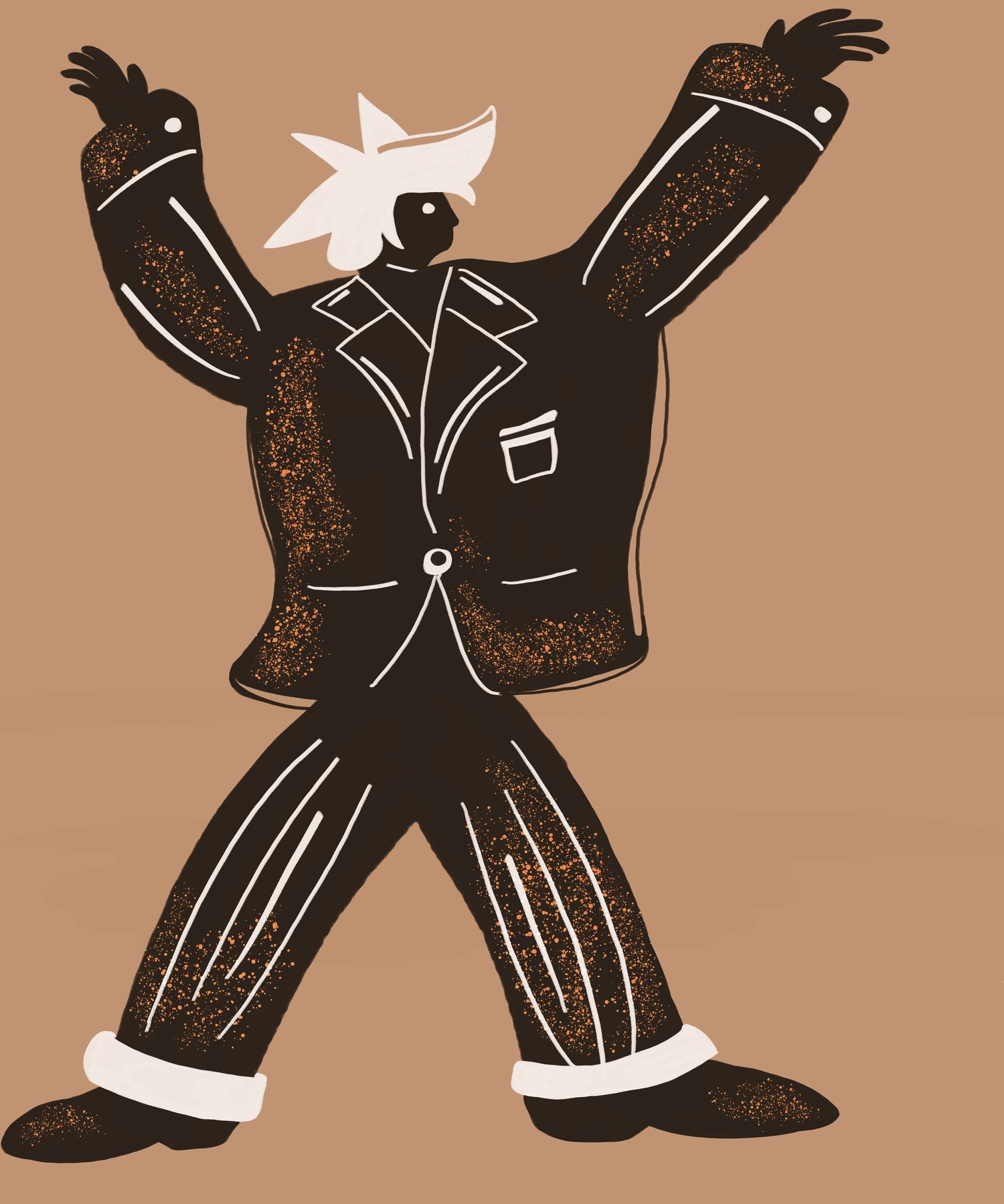 This is a character illustration with limited palettes that would suit publishing media.