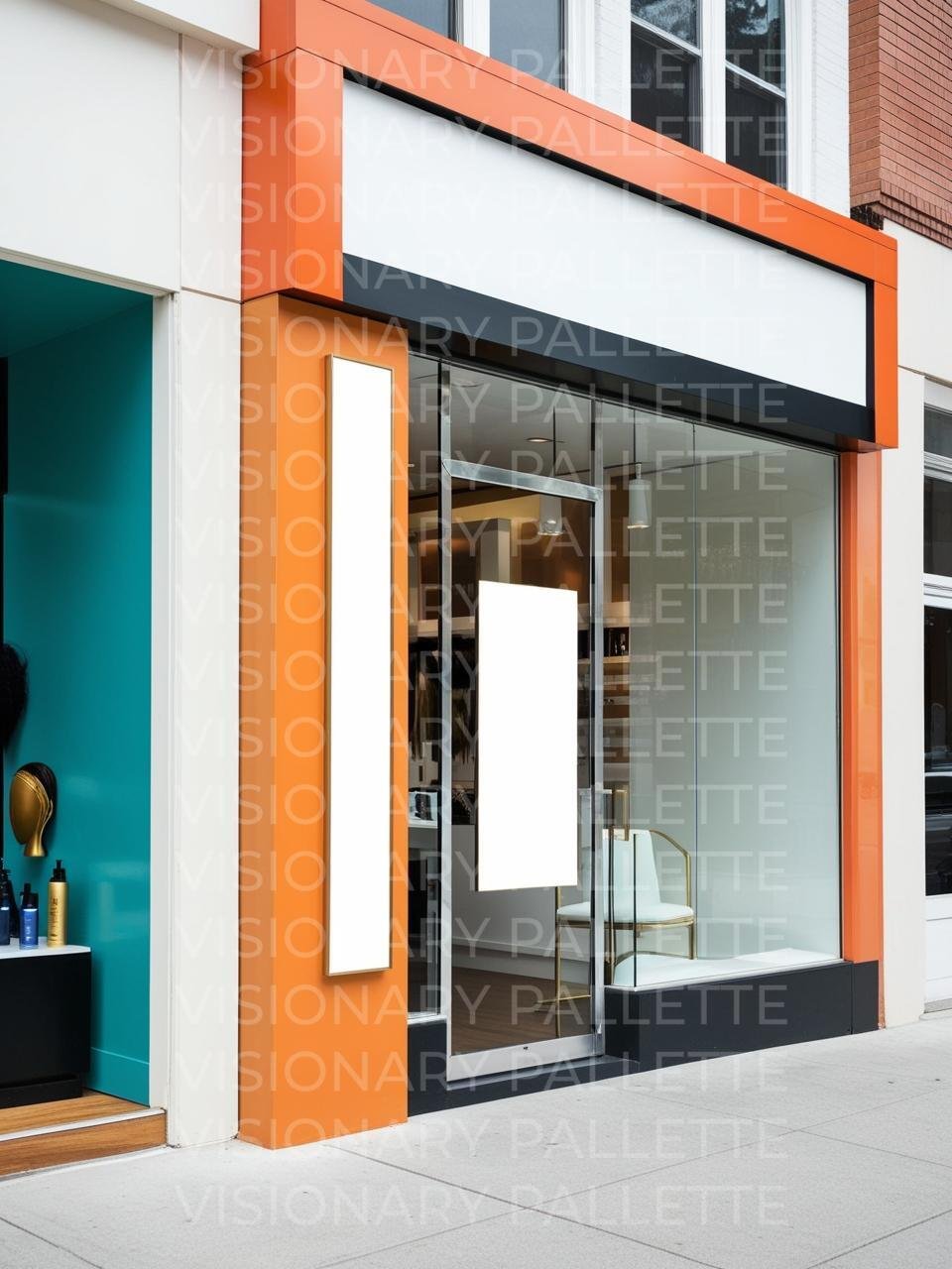 Orange, gold & teal Hair store storefront/Signage