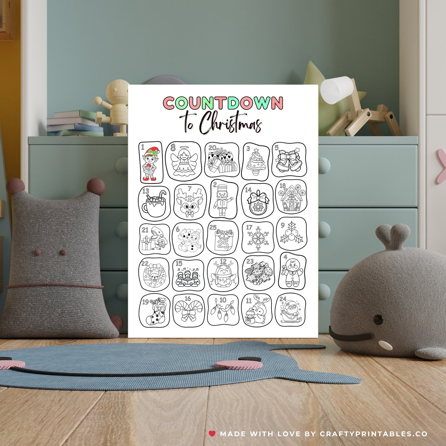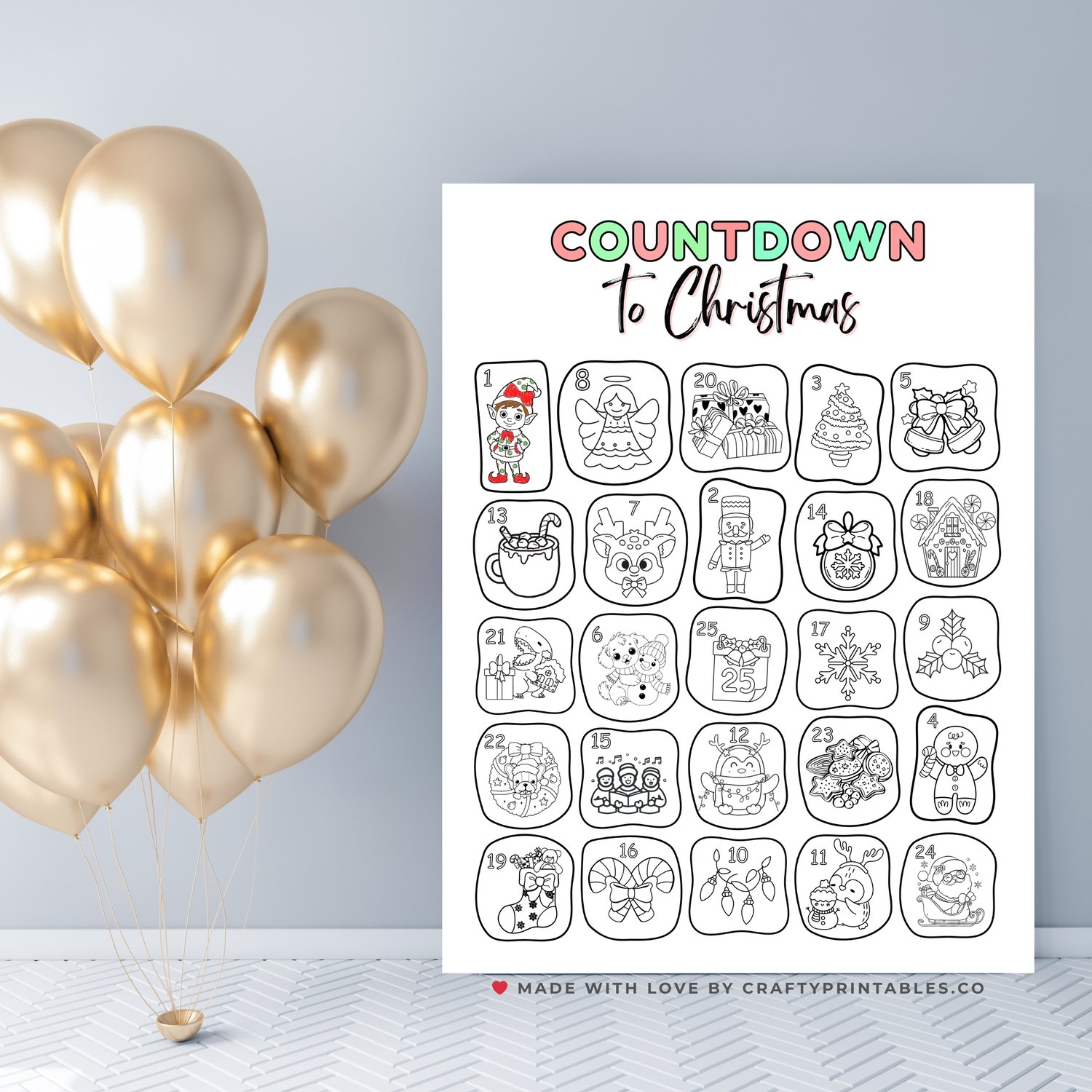 - Great for countdown posters, advent calendars, days-till-Christmas charts, and Christmas coloring pages