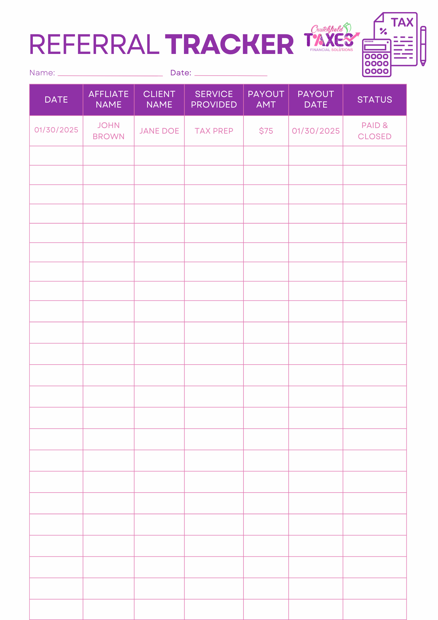 A practical, easy-to-use template designed to help businesses track referrals, rewards, and client engagement. Perfect for managing your referral program efficiently and boosting word-of-mouth marketing.
