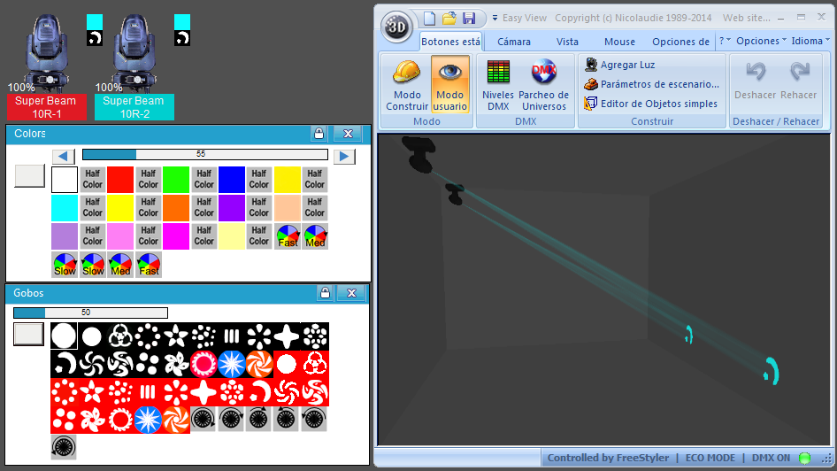 Esta Librería SSL2 está optimizada para trabajar con Magic 3d Easy View. Es decir para ver una representación 3D de las secuencias que estemos realizando con Freestyler, QLC+ o cualquier otro soft que se conecte con Magic 3d.