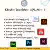 Create a Video Graphic Design in Minutes With 250,000+ Editable Templates (PSD, Ai, EPS, CDR ..) and a huge collection of designs that can be used for a large range of works such as Graphic Designing, Freelancing, Animation, YouTube Video Creations, Photography All these in one pack with all the relevant Adobe Software's.