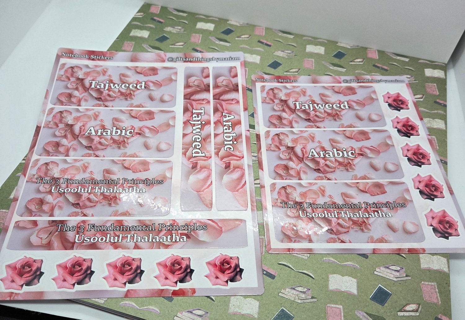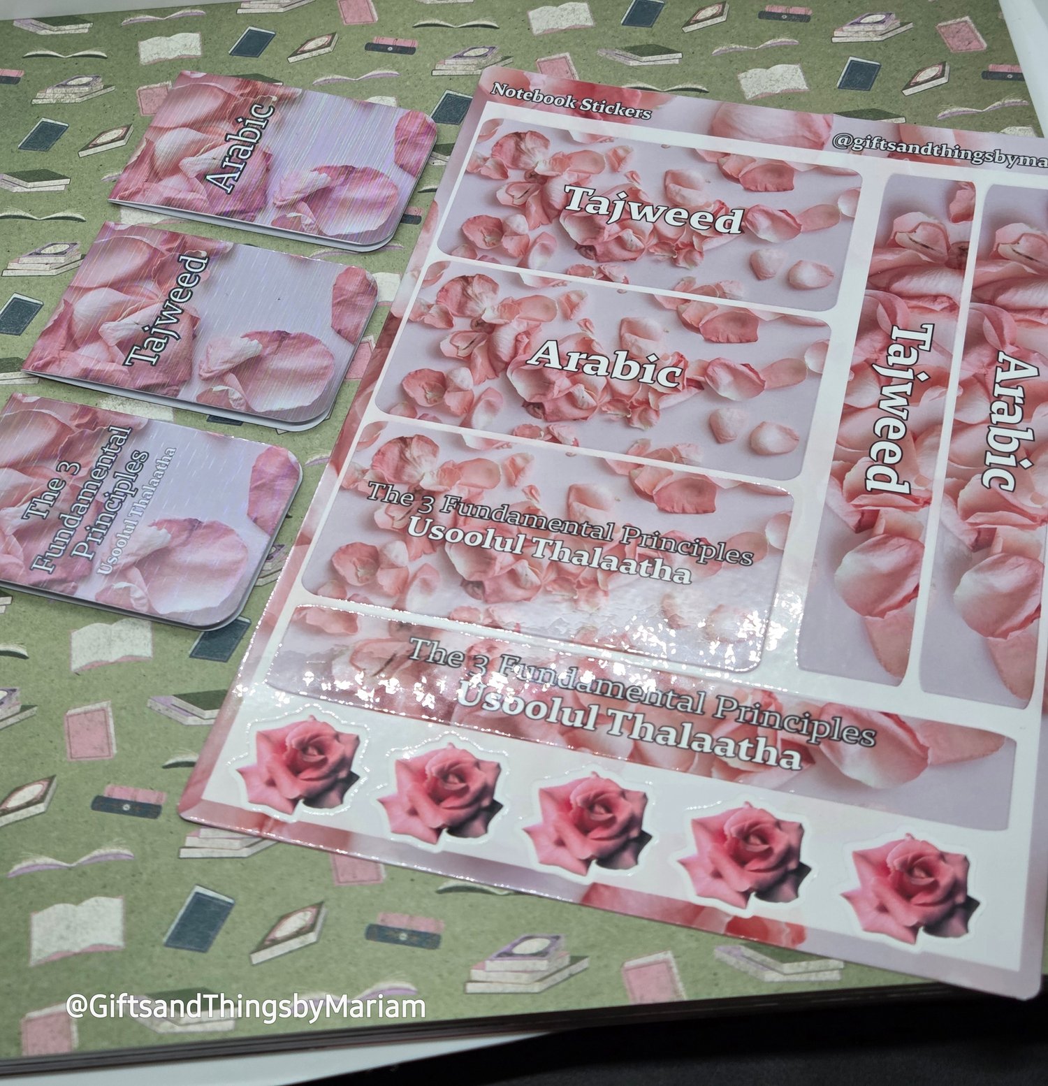 Transform your Islamic studies with our beautifully coordinated Notebook Labels and Magnetic Bookmarks for Arabic, Tajweed, and The Three Fundamental Principles of Islam (UαΉ£Ε«l ath-ThalΔthah).