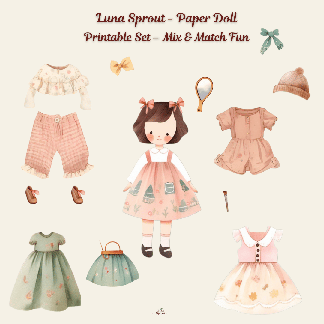 Meet Luna Sprout — a charming and delicate paper doll designed to spark creativity and inspire imaginative play. This printable set includes Luna and a variety of adorable outfits and accessories for endless mix-and-match fun.