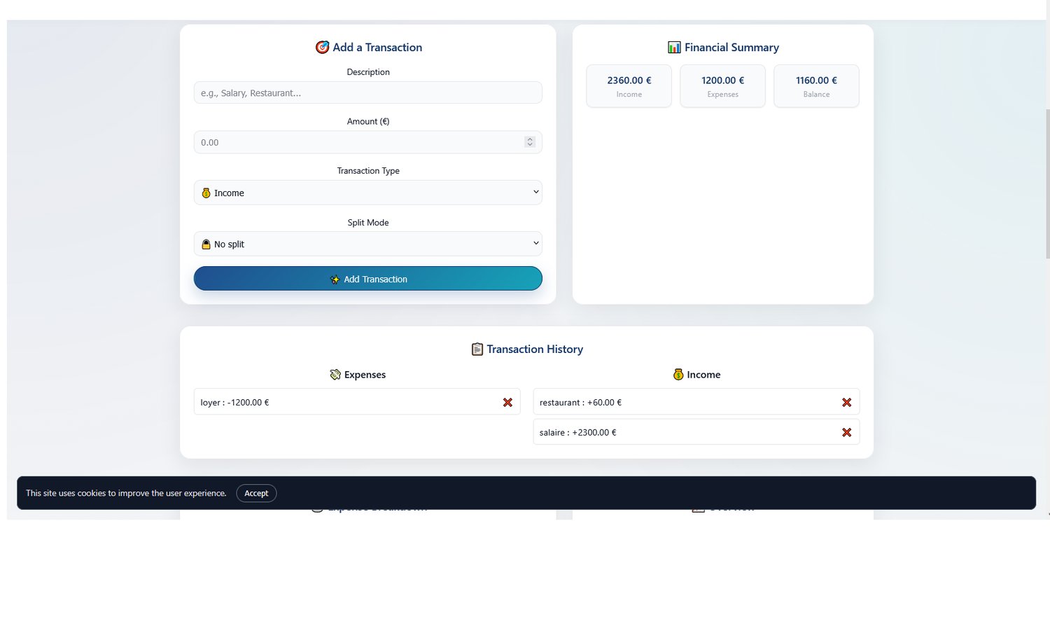 - 🥧 Graphique camembert : répartition des dépenses (Chart.js)