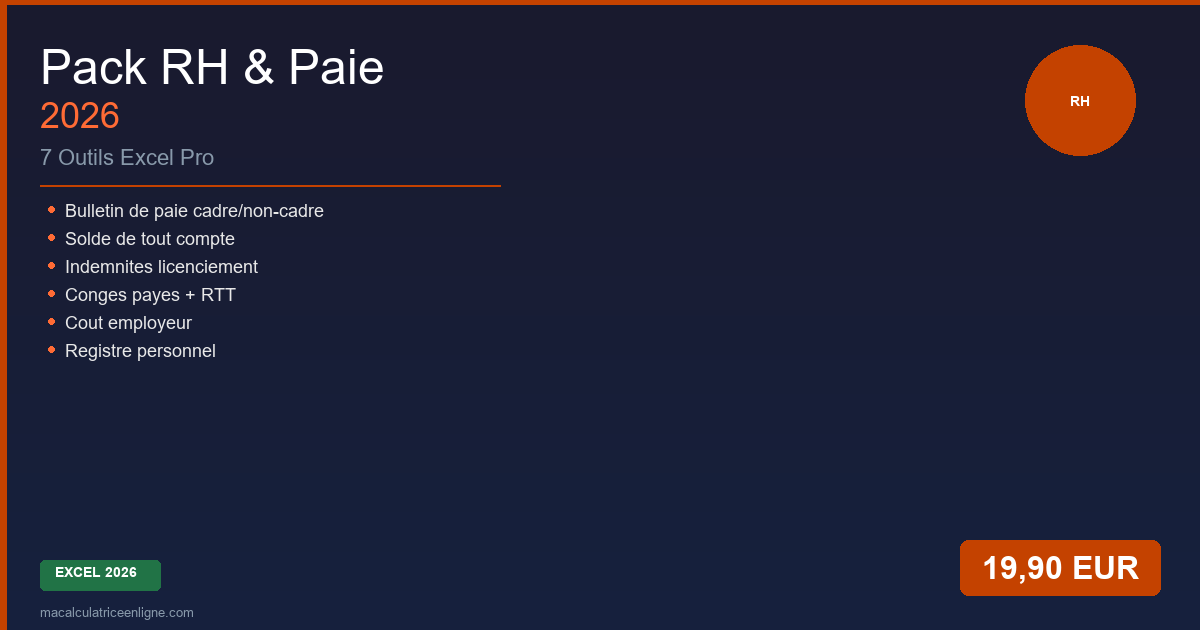 Pack RH & Paie 2026 — 7 Outils Excel Pro