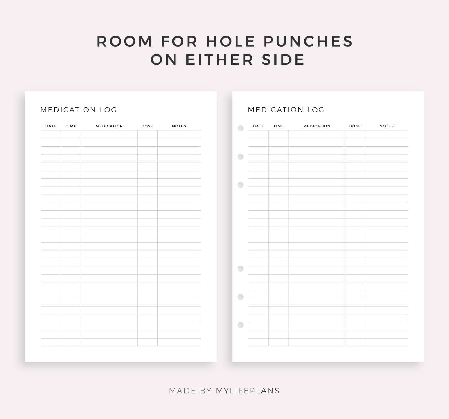 This is a printable medication log — just download, print, and start using it right away.