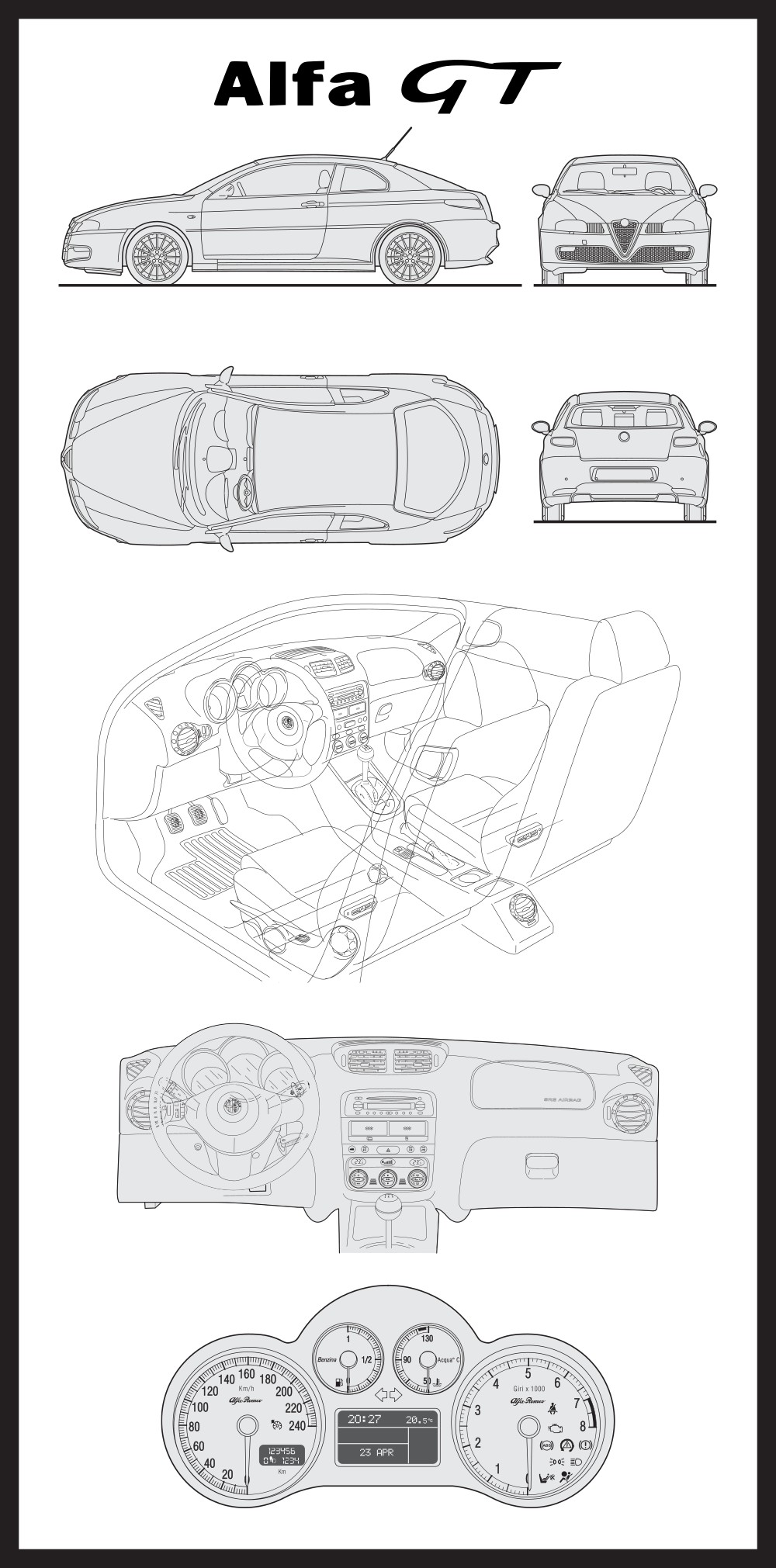 Alfa Romeo GT Car Blueprint PDF SVG Vector Drawing.