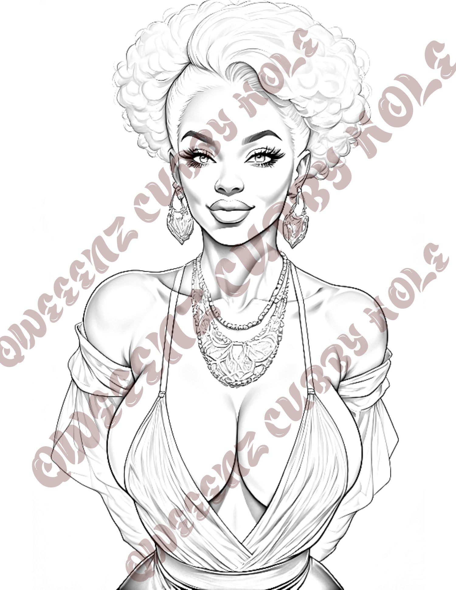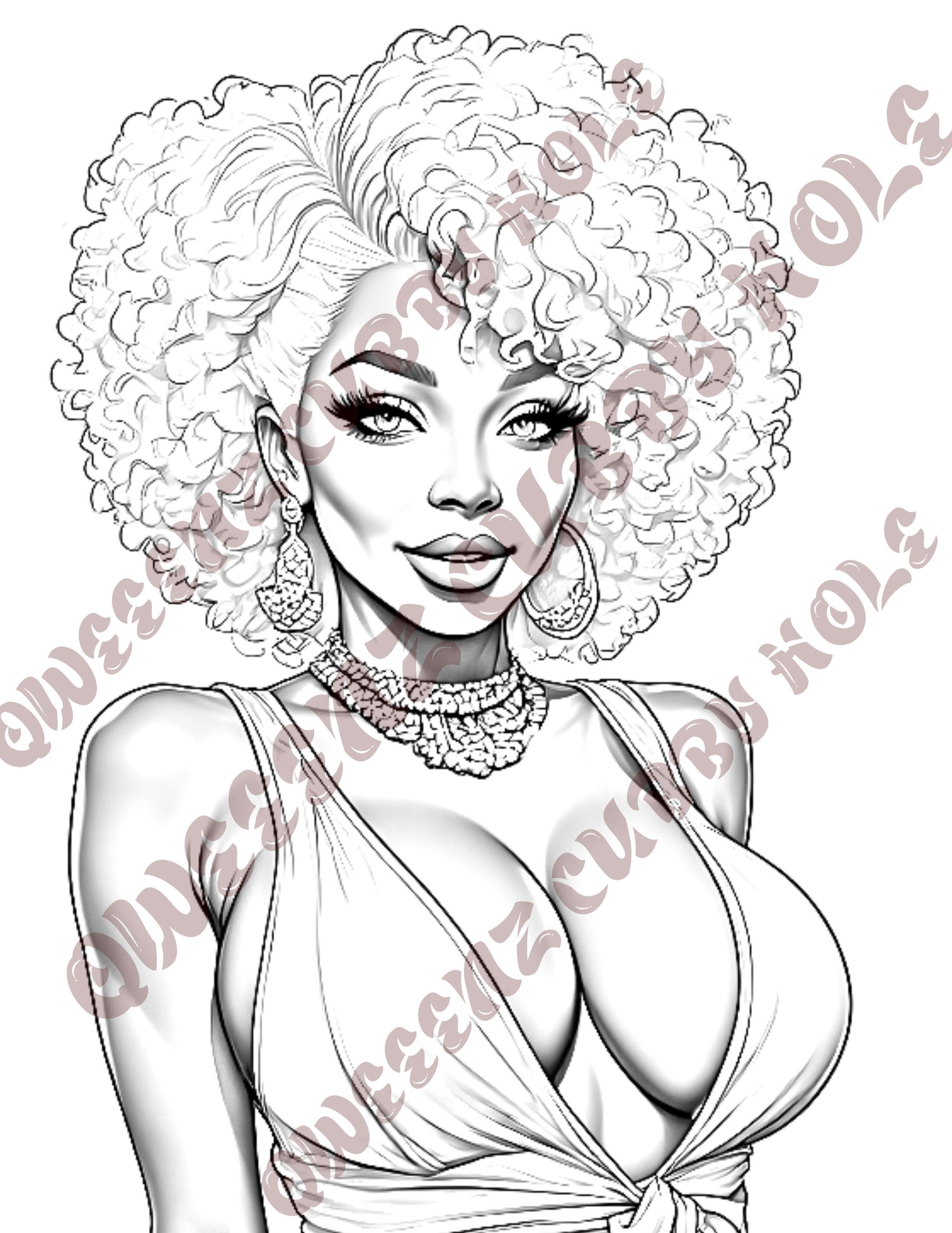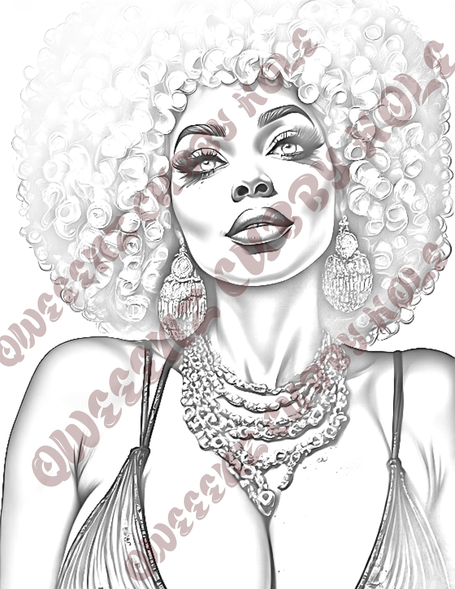 PACKAGE 1 (pdf) -- 10 AFRO QWEEN COLORING PAGE DUOS