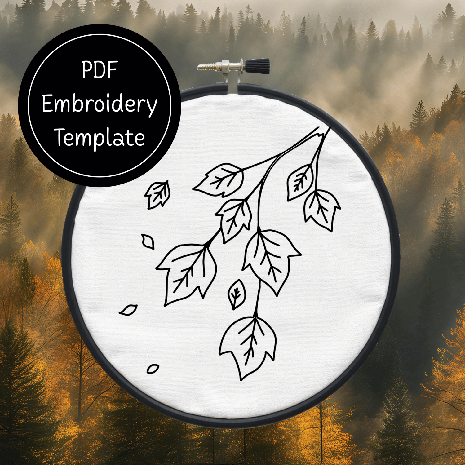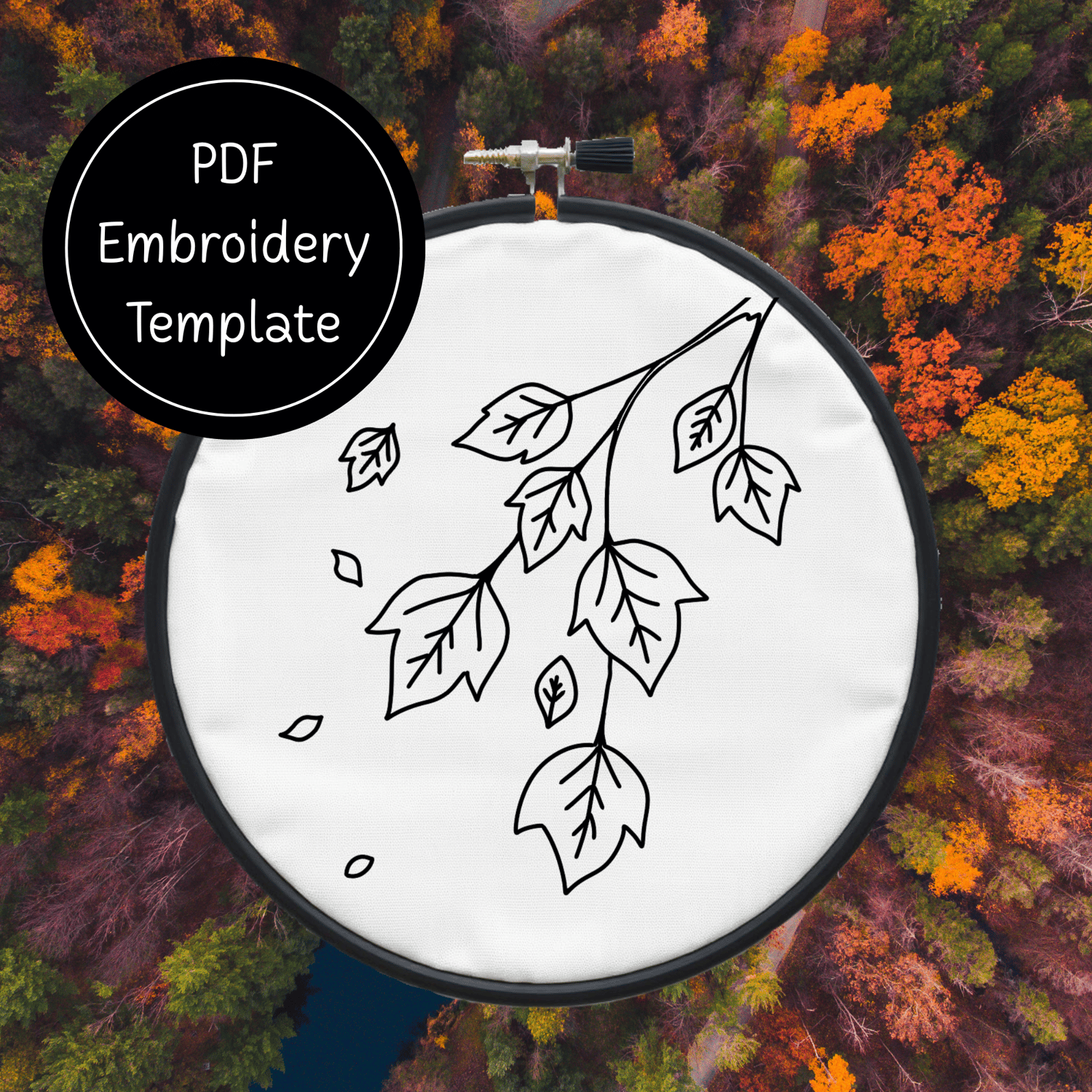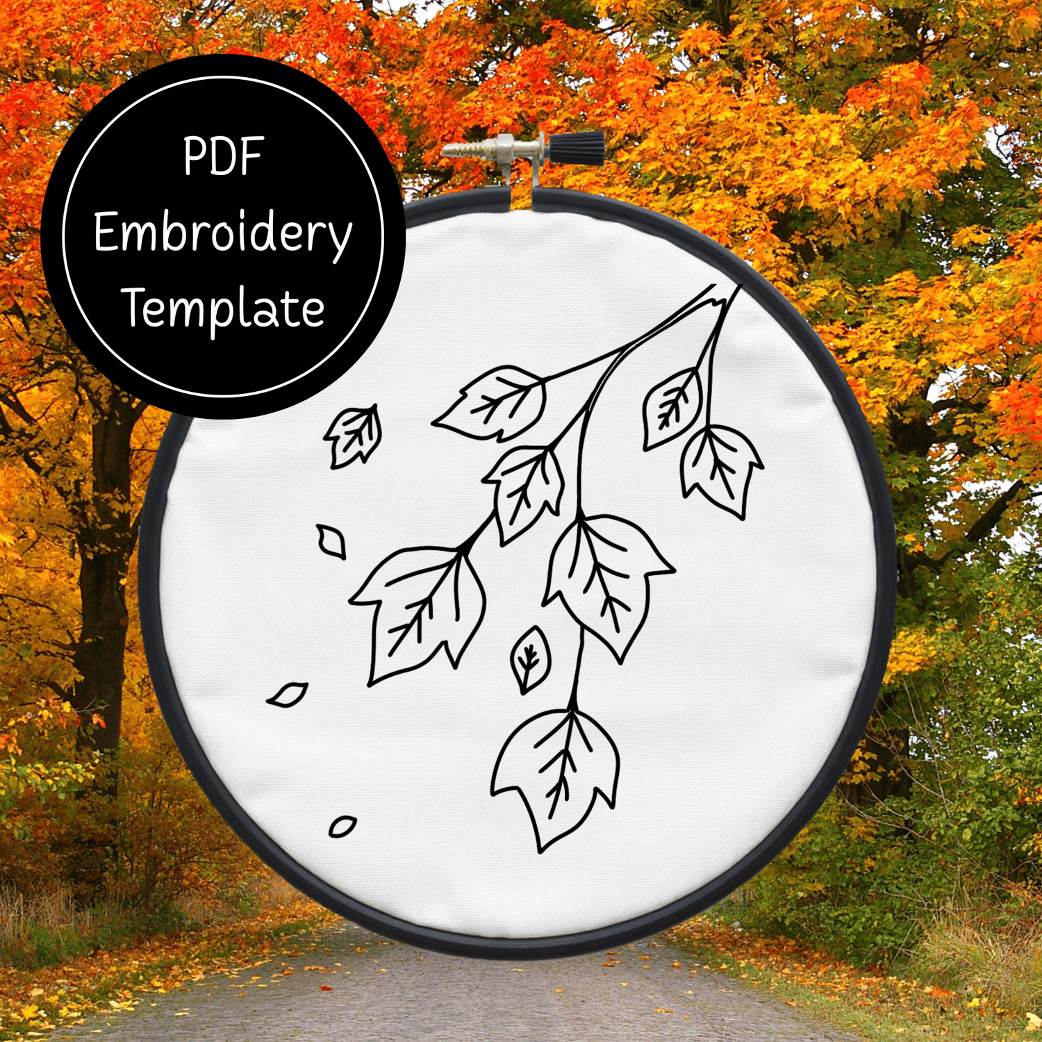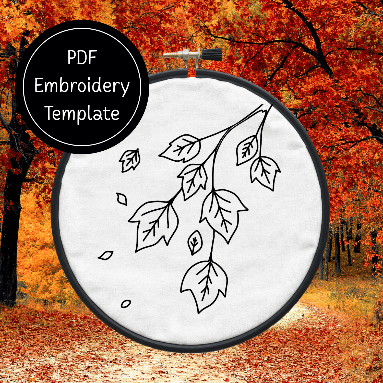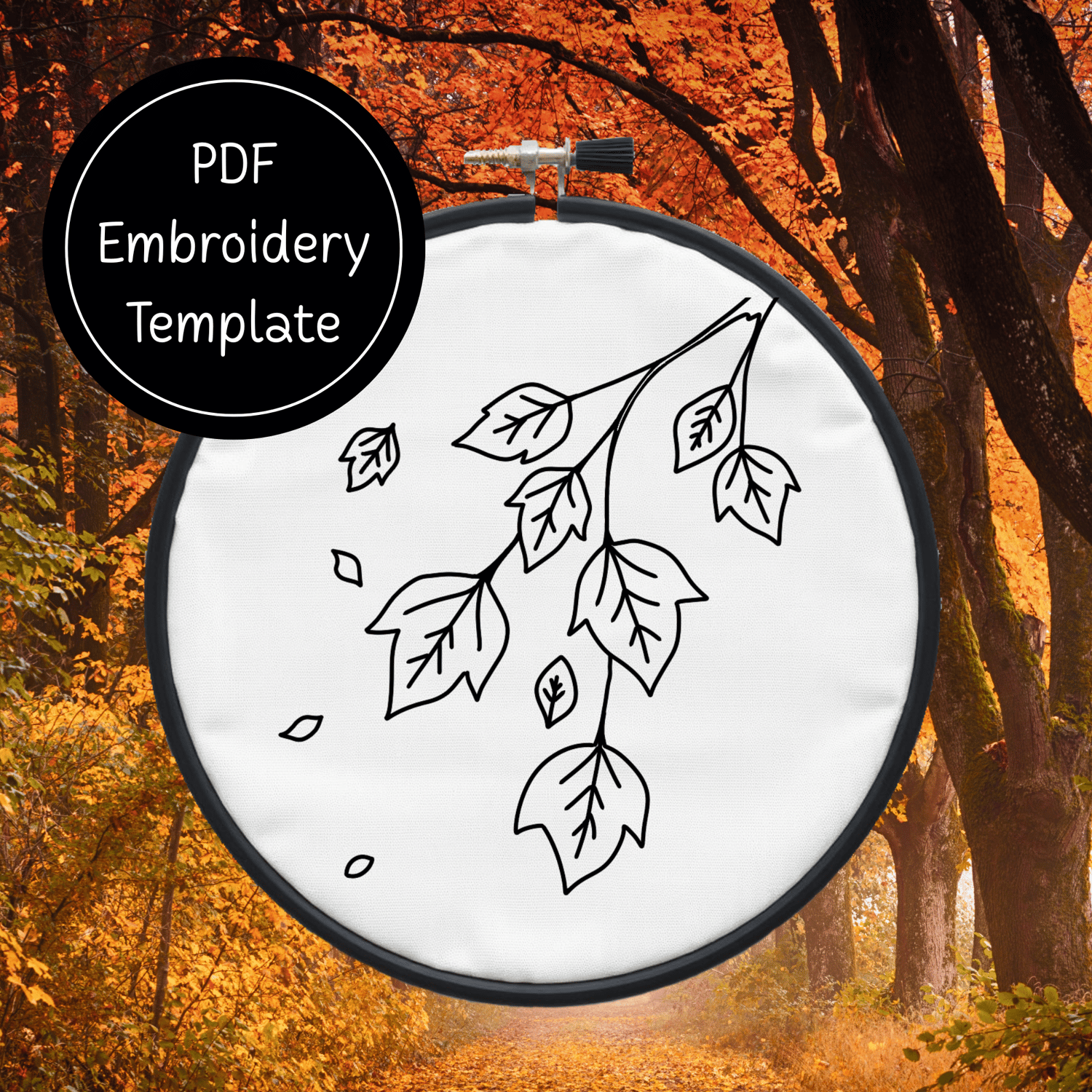 Fall Branch Hand Embroidery Template PDF - DIY Fall Design For Hand Stitching - Instant Download