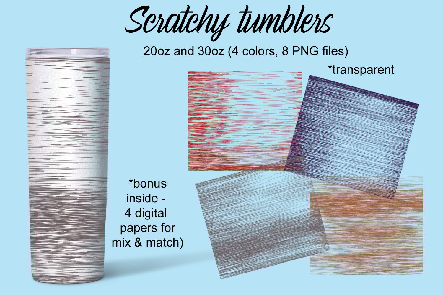 - Skinny tumbler wraps that look loke scratched surface for decorating tumblers (acrylic or colored) on your own