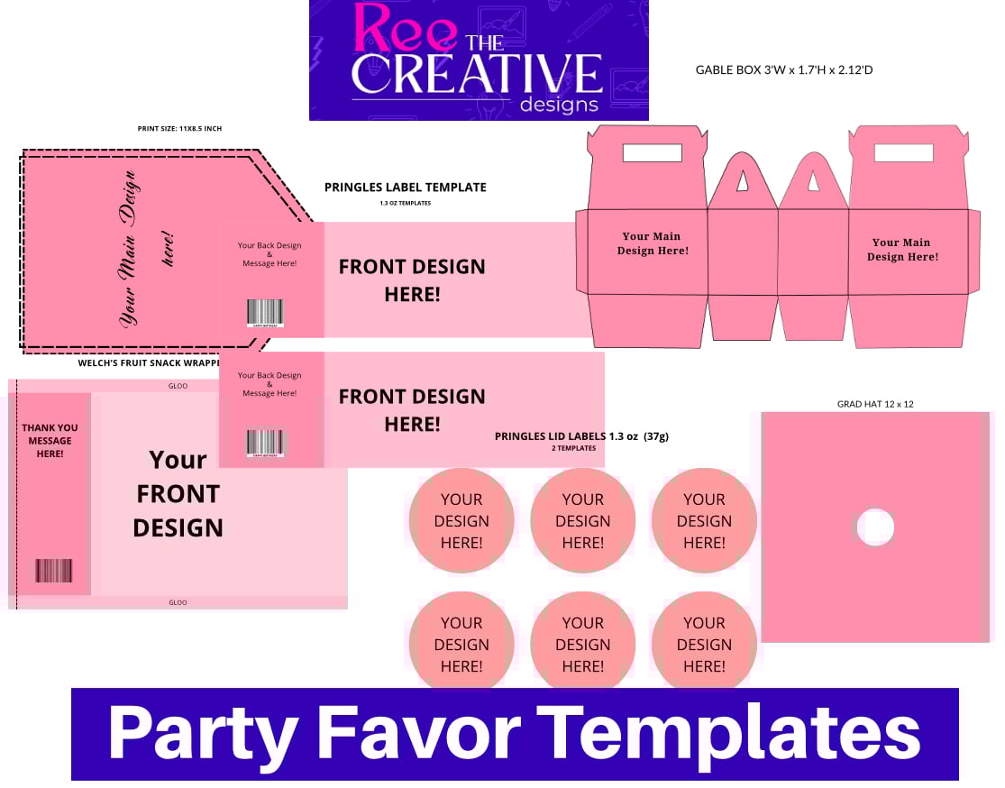 Party Favor Template Bundle – 17 Editable Designs