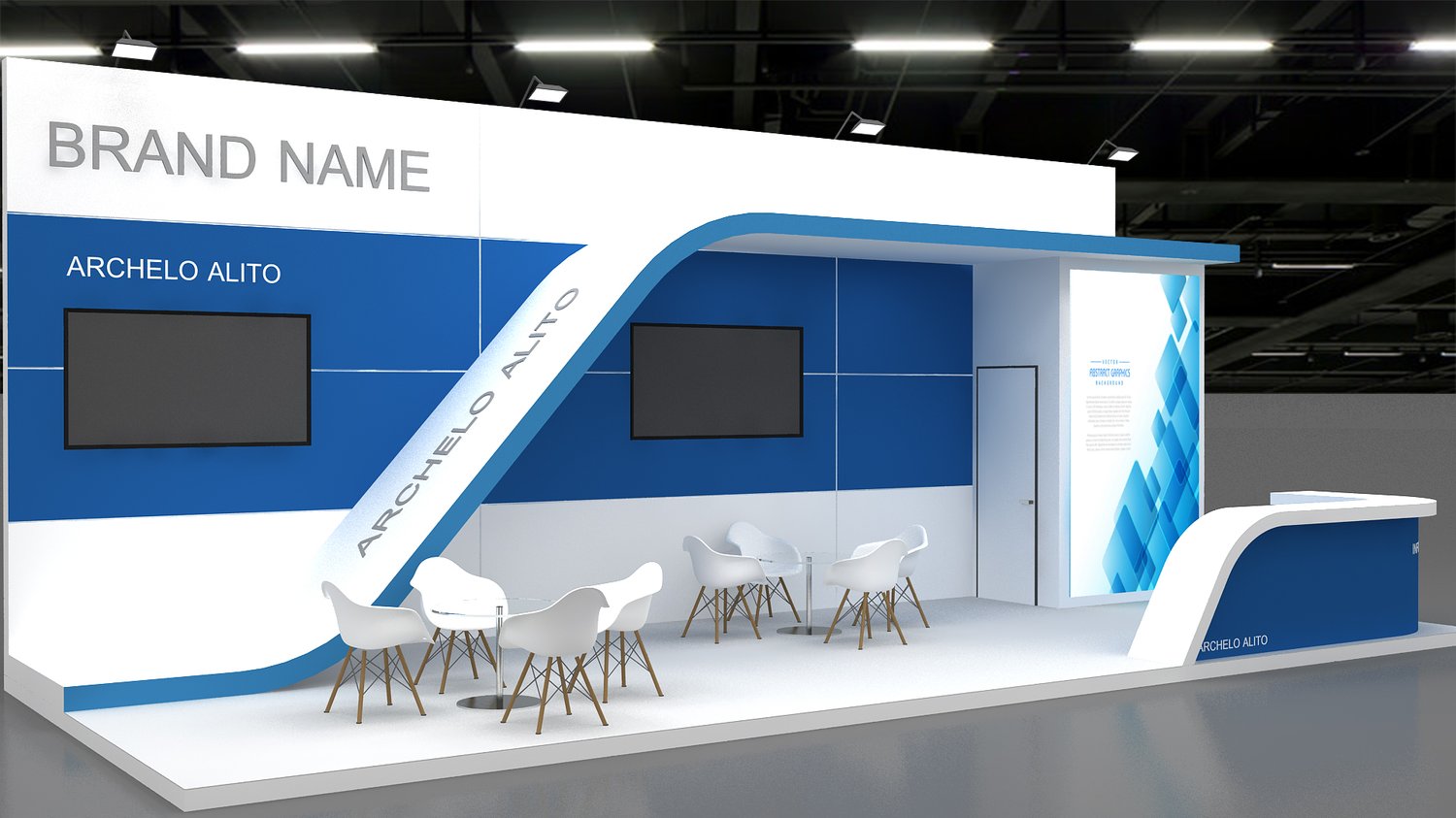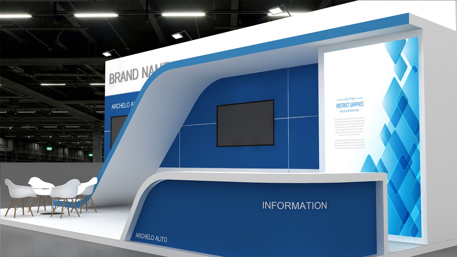 include design all necessary area in Exhibition and Booth Such as Vip and Storage and Counters and also Stand for productsFormat: 3DsMax (all version from 2016) / FBX /OBJ/