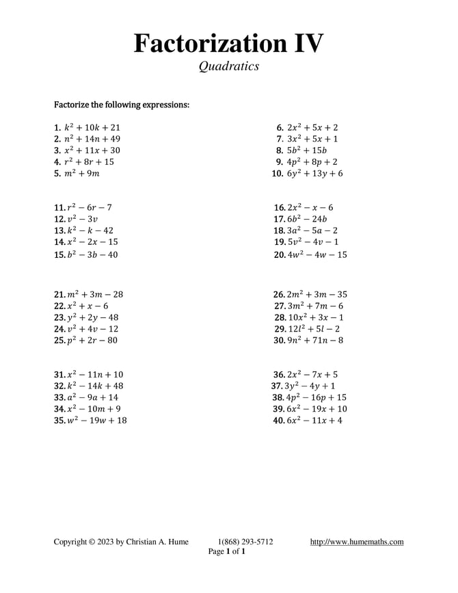 Factorization IV - Question set to practice.