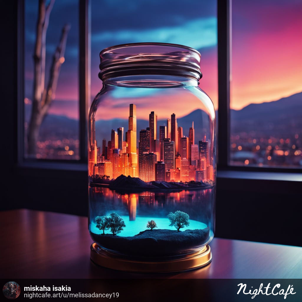 https://creator.nightcafe.studio/creation/CUtm67Xh0XjbxruelPvH/a-glass-jar-which-has-a-surrealist-city-landscape-a-crystal-future-looking-world-inside-sitting-on-a?ru=melissadancey19
