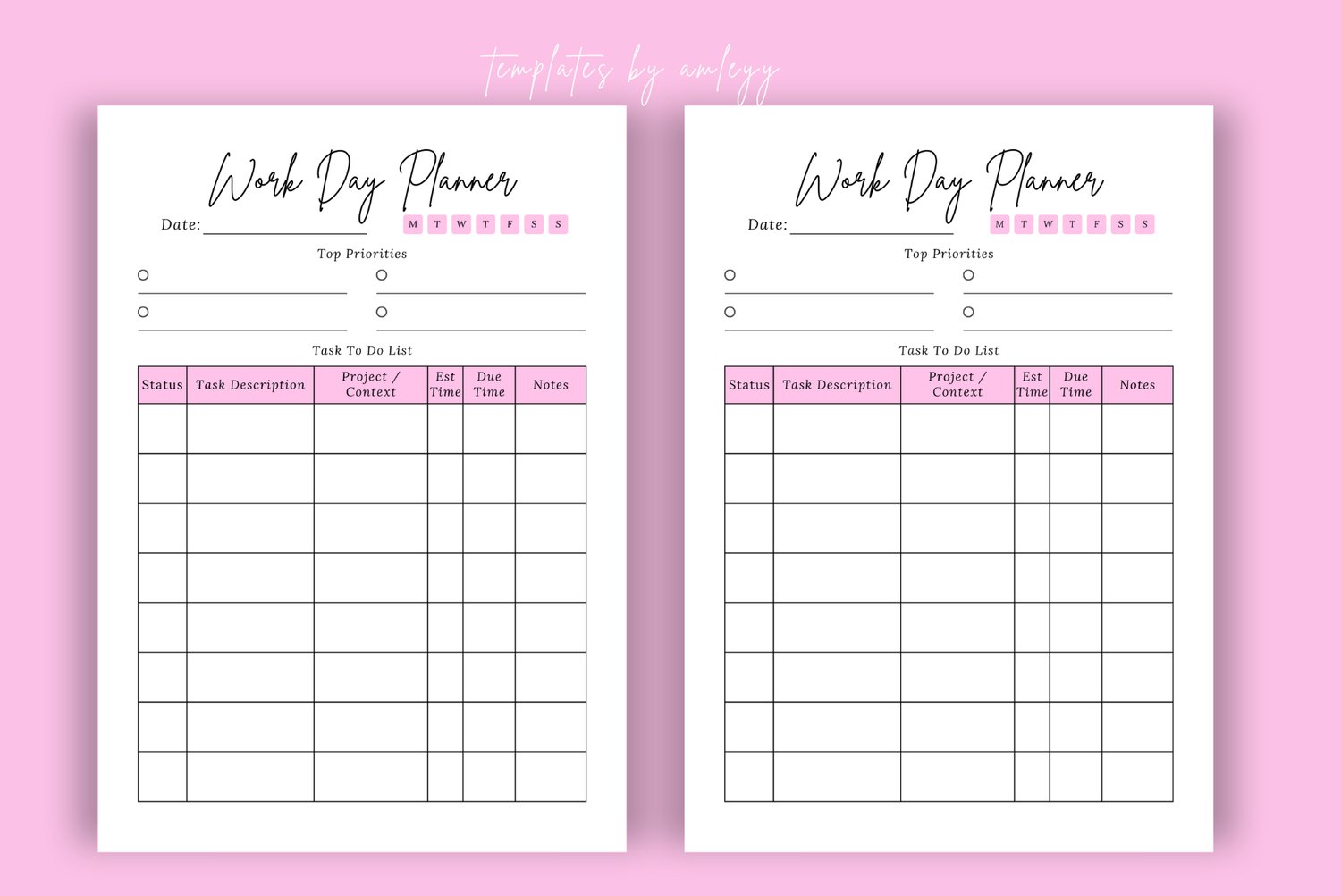 Make every day organized, productive, and adorable with this Work daily planning sheet!