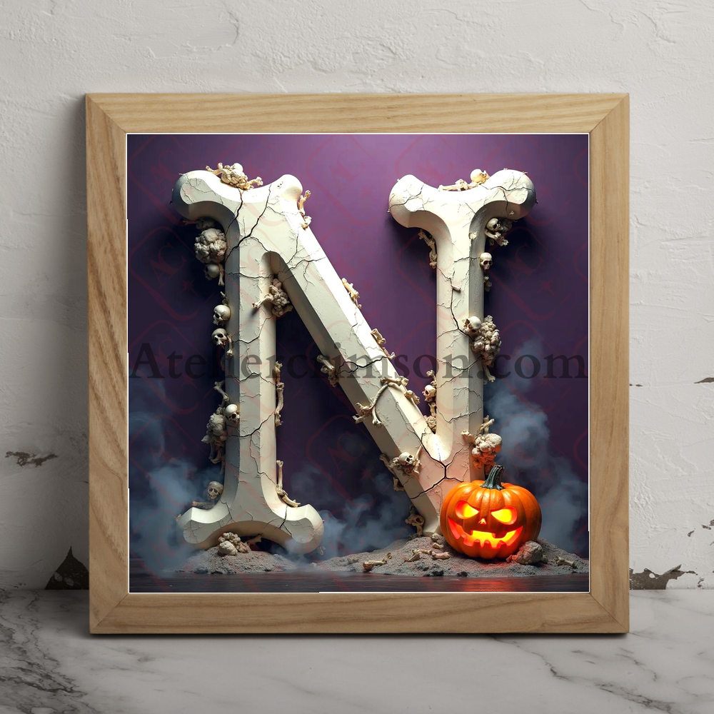 The letter N spooky character skull Halloween Discover our Spooky Skull Alphabet! Each character is a 3D masterpiece of bone and shadow. Perfect for Halloween designs, gothic projects, or unique wall art. 💀✨ Click to download this high-resolution character and elevate your creations with haunting elegance!