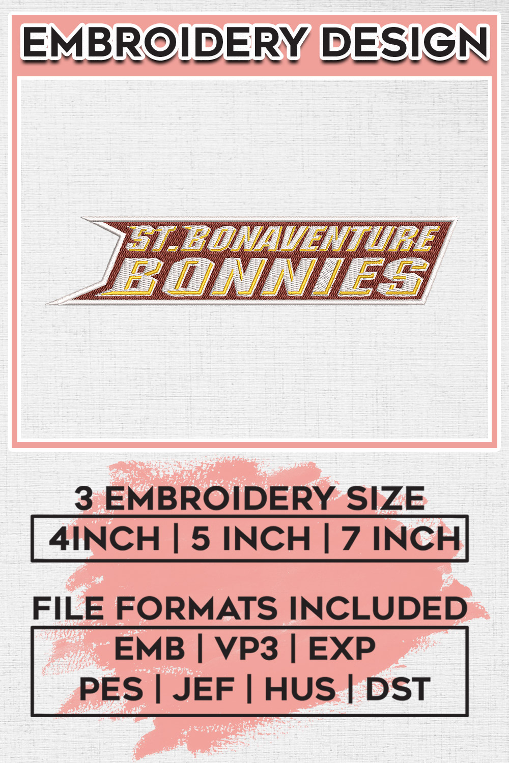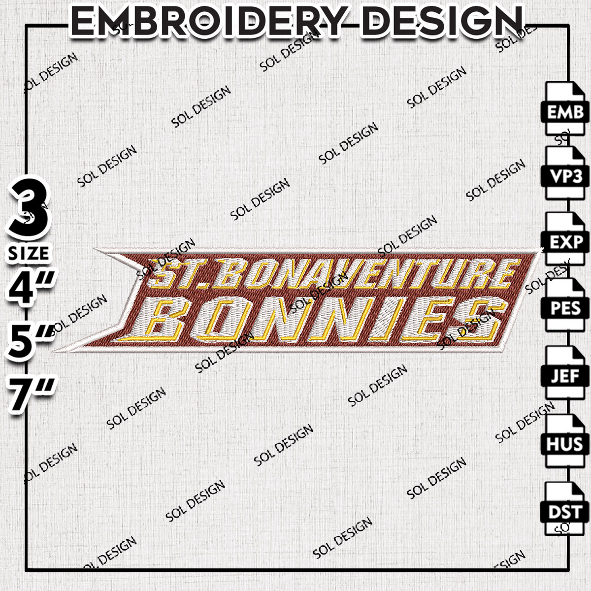 NCAA St. Bonaventure Bonnies Football Team Writing Logo Embroidery Designs, NCAA St. Bonaventure Bonnies Machine Embroidery Files, NCAA Logo embroidery designs, NCAA St. Bonaventure Logo, Digital Download