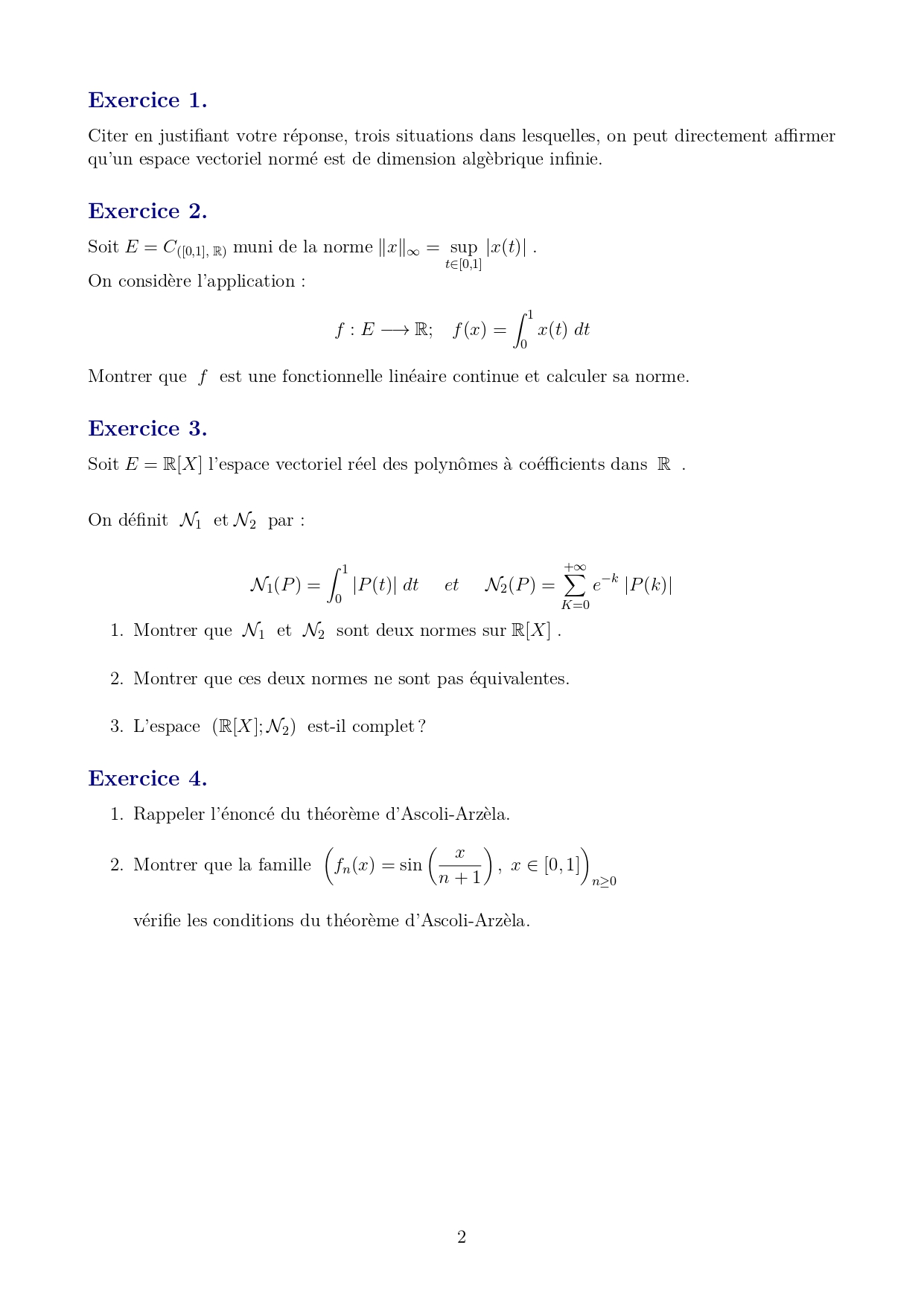 - Normes non équivalentes : Identifier et démontrer que deux normes sur un espace vectoriel donné ne sont pas équivalentes.