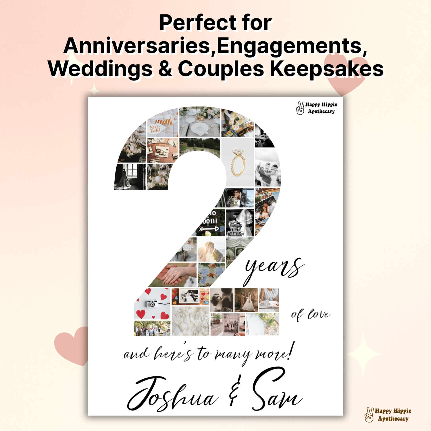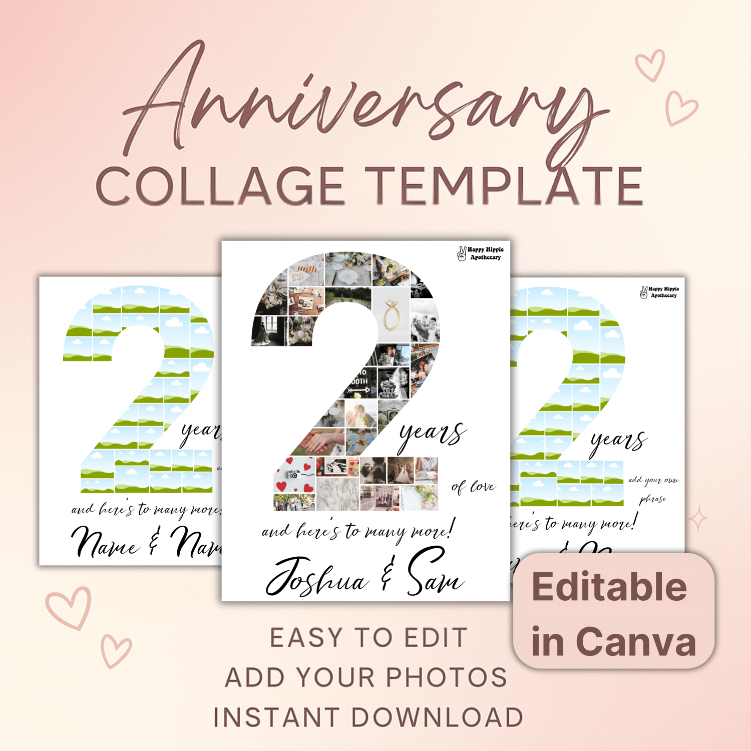 2 Year Anniversary Canva Template – Romantic Editable Photo Collage | Digital Download