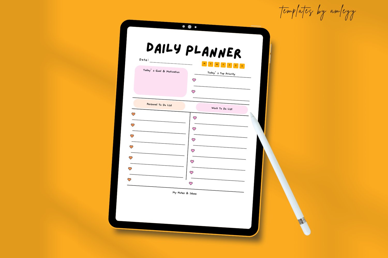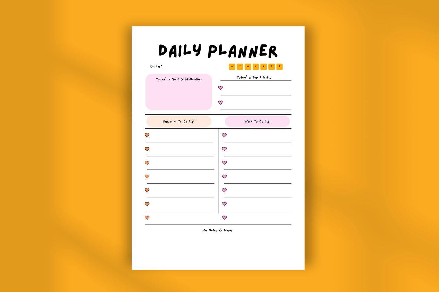 Introducing the Cute Pink Aesthetic Daily Planner Template, designed to bring fun and functionality to your daily routine! This planner is perfect for students, creative entrepreneurs, or anyone who loves a cheerful design while staying highly organized.