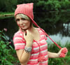 Lain is the main character from the anime, “Serial Experiments: Lain”. It was one of the first anime I watched and, although Lain doesn’t wear this hat in particular, it reminds me of something she would wear.