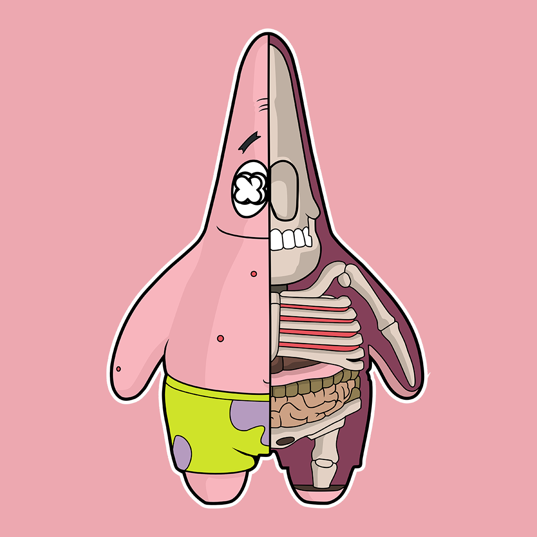 DESIGN VECTOR CHIBI PATRICK STAR HALF SKELETON