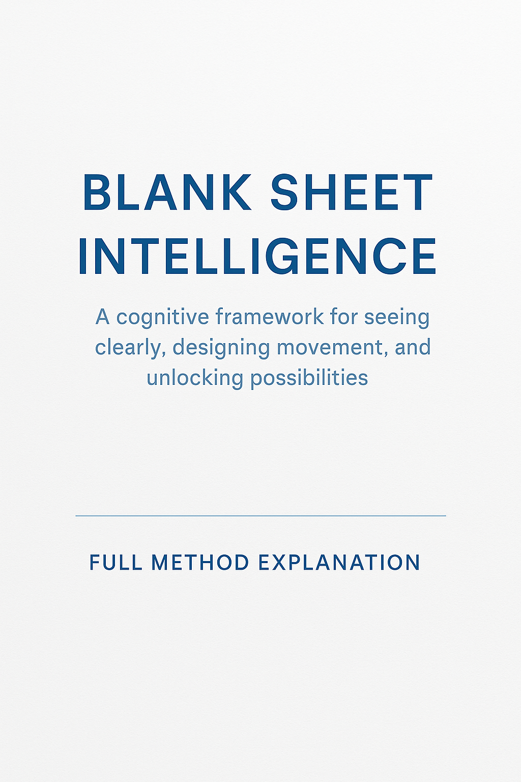 Blank Sheet Intelligence is a breakthrough cognitive framework that gives leaders and creators the ability to see their system clearl: without noise, assumptions or inherited limitations. Instead of reacting to problems, you learn to design movement from a clean mental architecture.