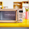 This little microwave features a working door and control knob.
