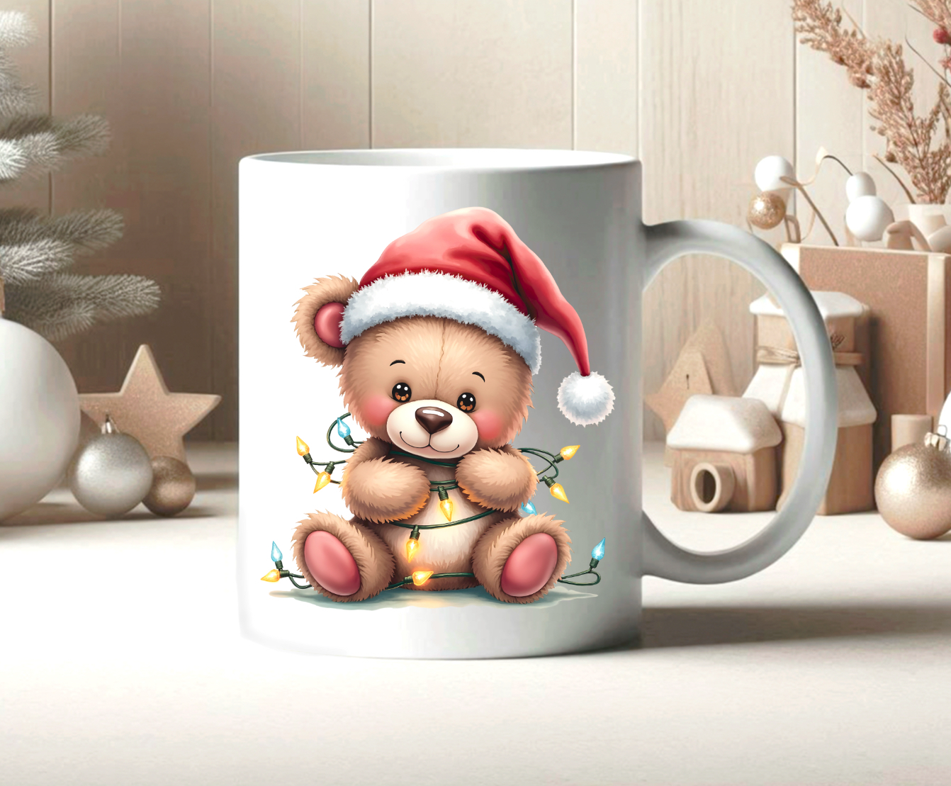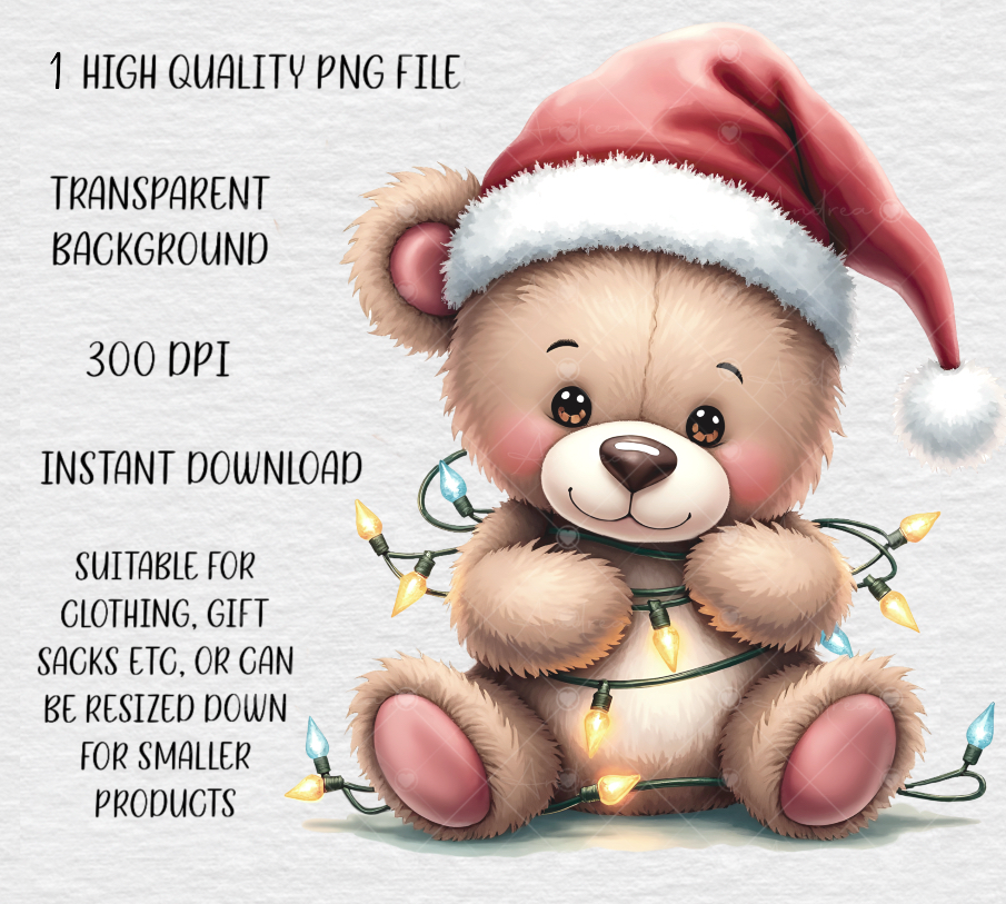 Christmas Teddy Bear wrapped in lights. 1 Christmas PNG, Sublimation, print, DTF etc. Instant Download