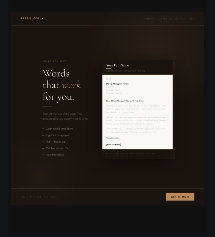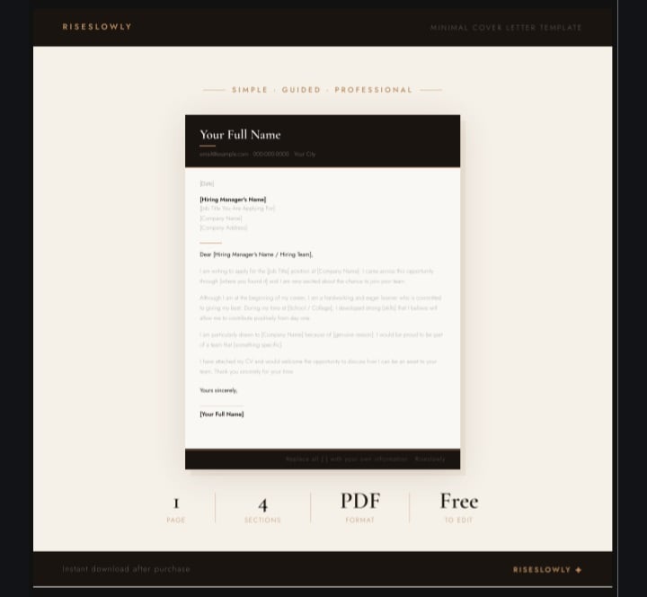 One great cover letter can change everything. #riseslowly 🤍