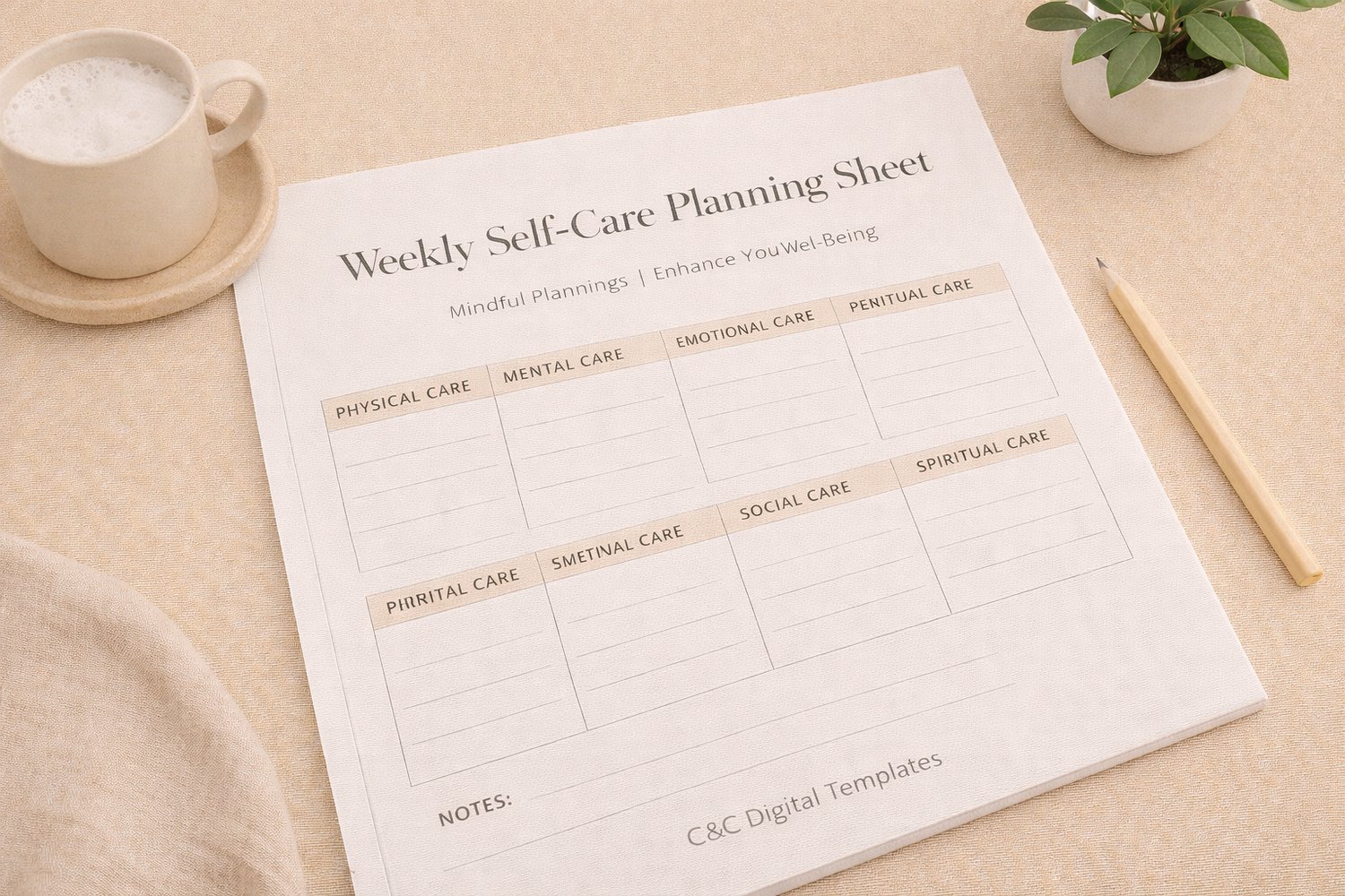 Weekly Self-Care Planner – Simple Wellness Planning Sheet | Minimal Design