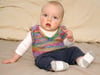 “This End Up” is a relatively straightforward baby vest with some textured detail at the front and back waistline for extra interest. The vest is particularly designed to show off handpainted yarns without worrying about pooling. Garment is knit flat to help with avoiding pooling differences at the neckline. Ribbing at the armholes and neck is picked up after seaming.