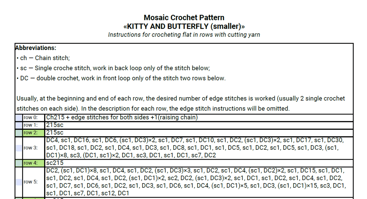 Overlay Mosaic Crochet "KITTY AND BUTTERFLY (smaller)" pattern