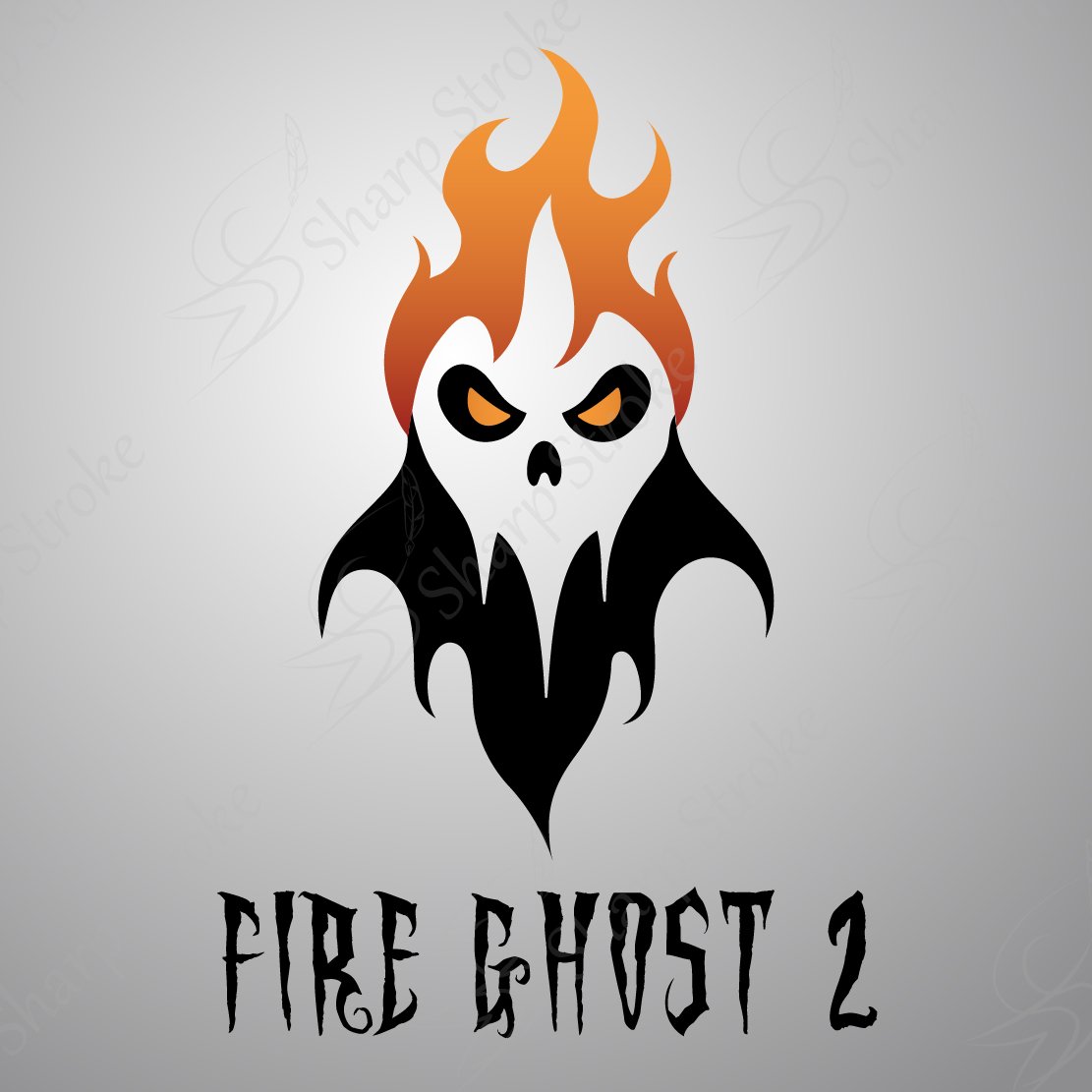 This design features a white ghost with red and orange flames atop its head like wild hair, plus dark, flame-like accents — a fiery twist on any project.