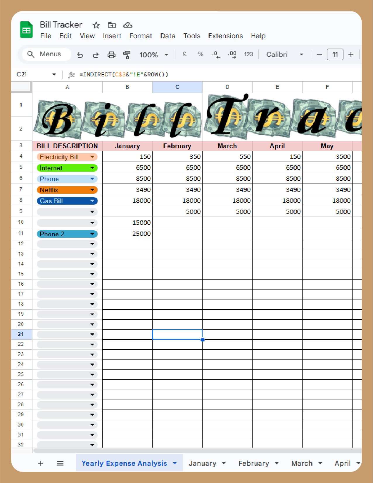 2οΈβ£ Ultimate Bill Tracker β Monitor all your recurring bills, due dates, payments, and yearly expenses with automatic calculations and color-coded status.