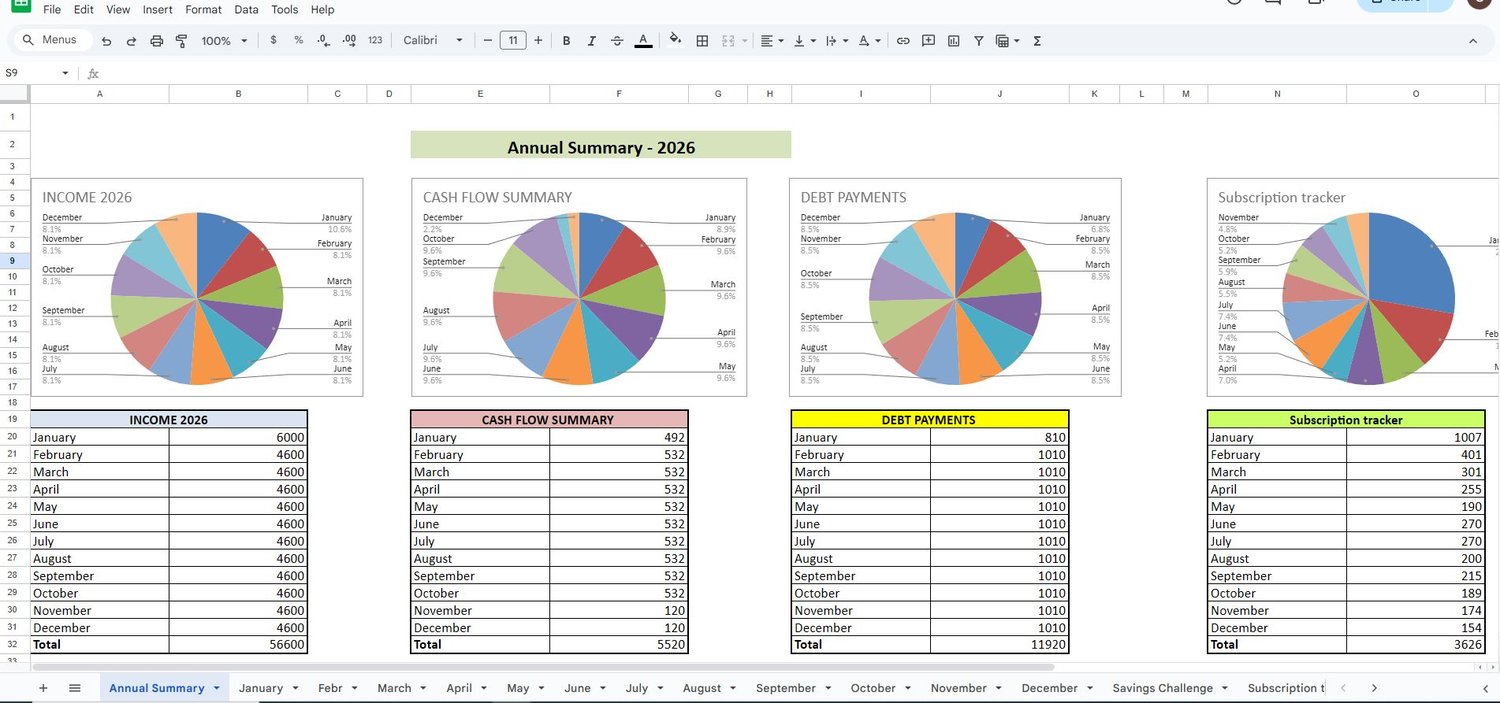 1οΈβ£ Monthly Budget Planner 2026 β Track income, expenses, savings, and debt for the entire year.