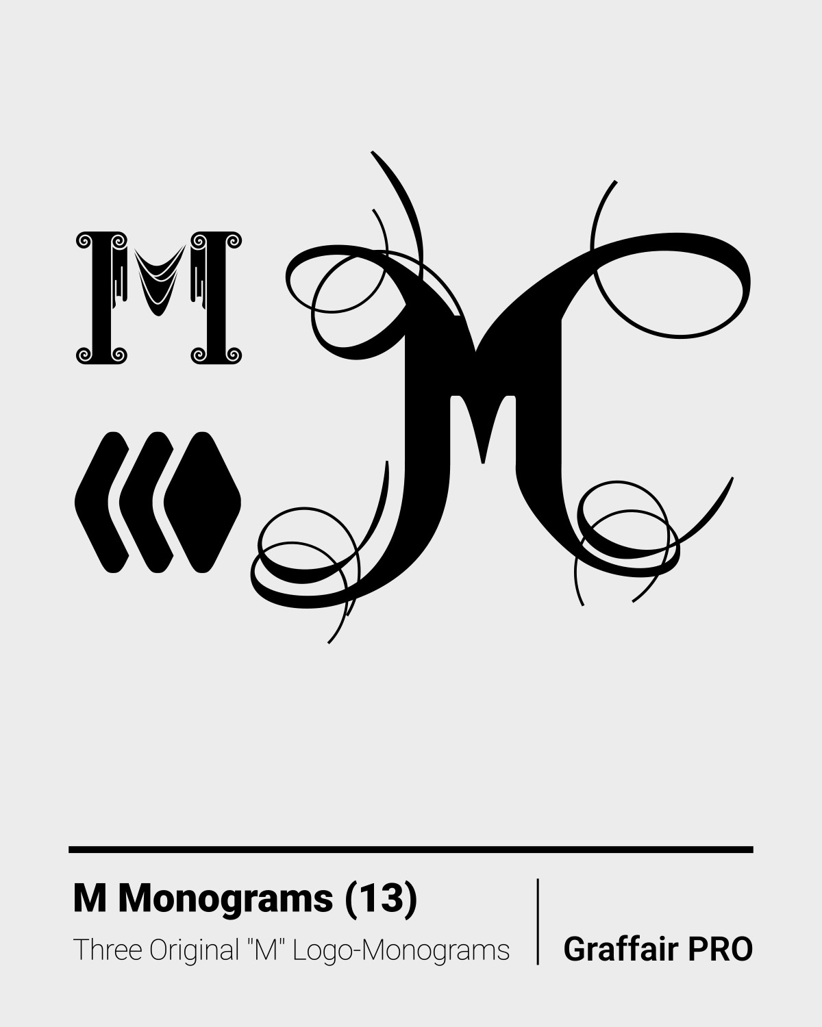 M Monograms (13): The 13th set of three original "M" logo monograms, included in the "1050 SVG Monograms" super bundle, which also features an Index catalog.