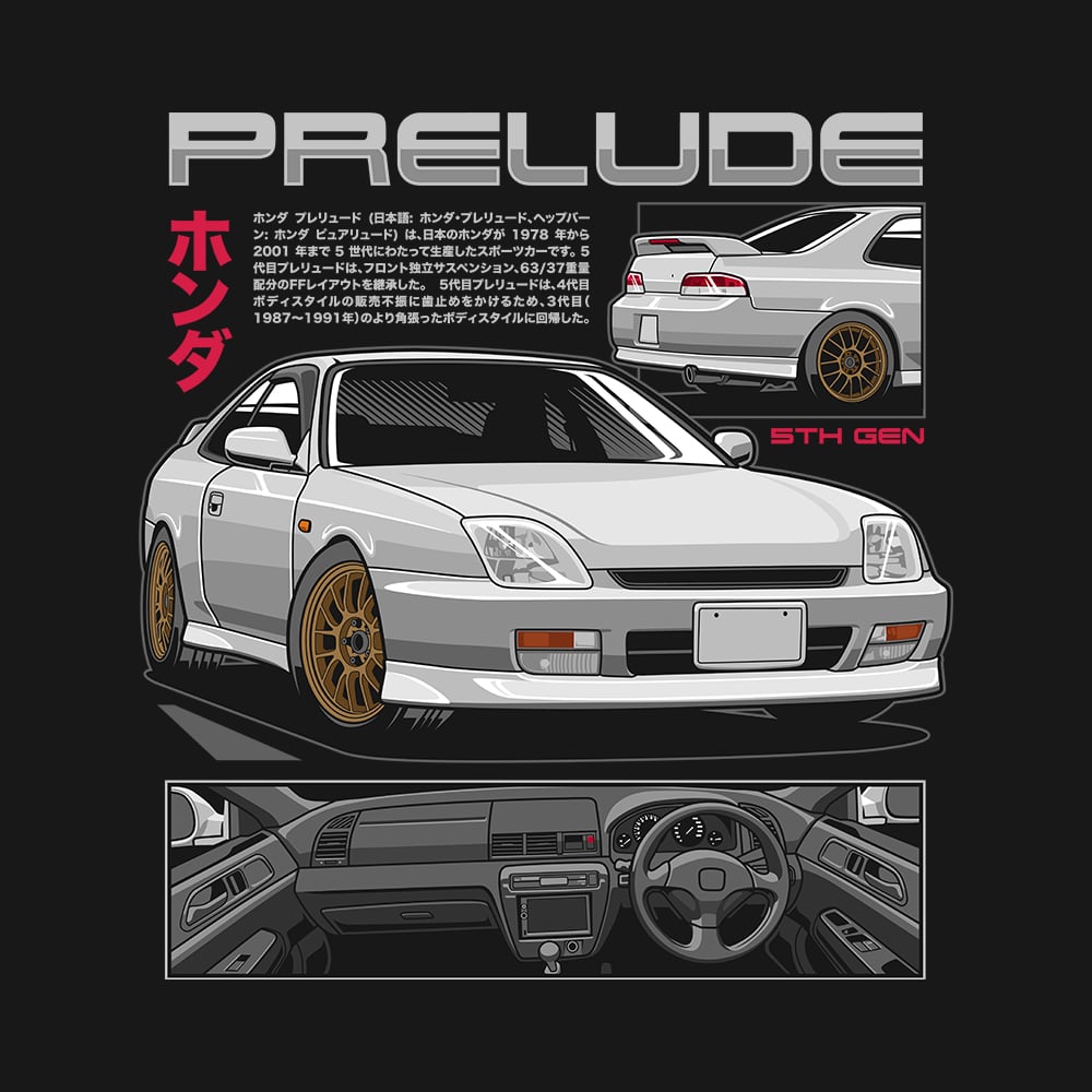 Celebrate Honda's revolutionary front-wheel-drive sports coupe with this 5th Generation Honda Prelude digital art print. This design pays homage to the Prelude's 23-year legacy (1978-2001), highlighting its unique 63/37 weight distribution, independent front suspension, and the 5th gen's return to angular styling that saved the model line.