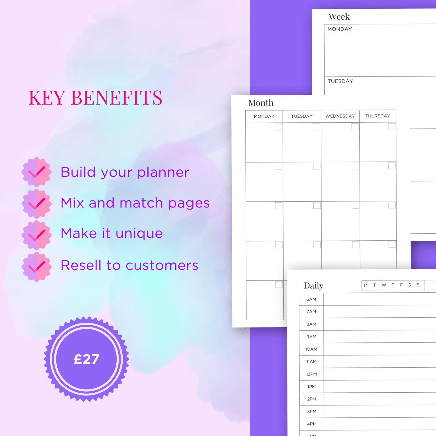 - Plus 30+ BONUS mockup templates, ideal for promoting your new planner (or any other digital product)