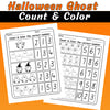 Halloween Ghost Count & Color Worksheets | Numbers 1-10 Math Activities for Kindergarten (PDF)