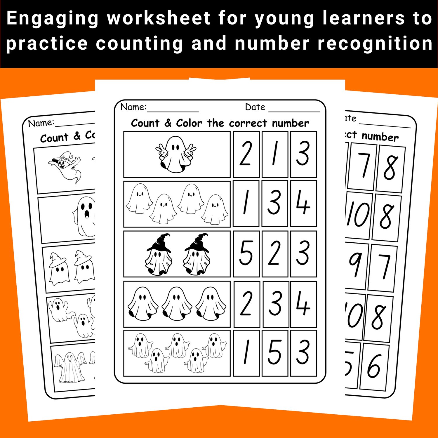 Kids will love coloring the ghosts as they count them, then filling in the matching number box, making learning both hands-on and engaging.